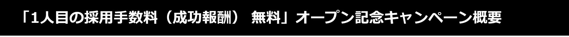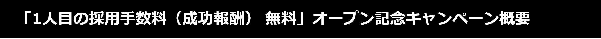 サービス開始を記念して、新規に契約いただいた採用企業向けに、1人目の採用手数料(成功報酬)が無料になる特別キャンペーンを実施いたします。