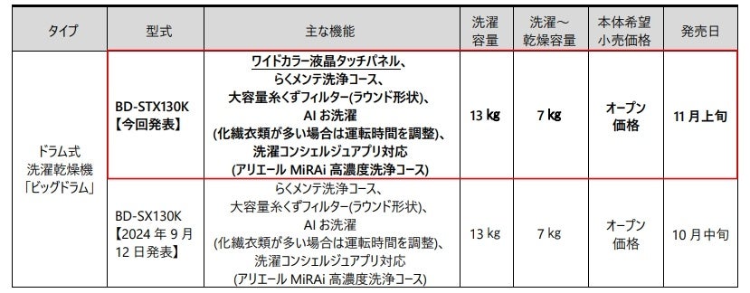 ドラム式洗濯乾燥機「ビッグドラム」の最上位モデルBD-STX130Kに「らくメンテ洗浄」コースなどの新機能を追加