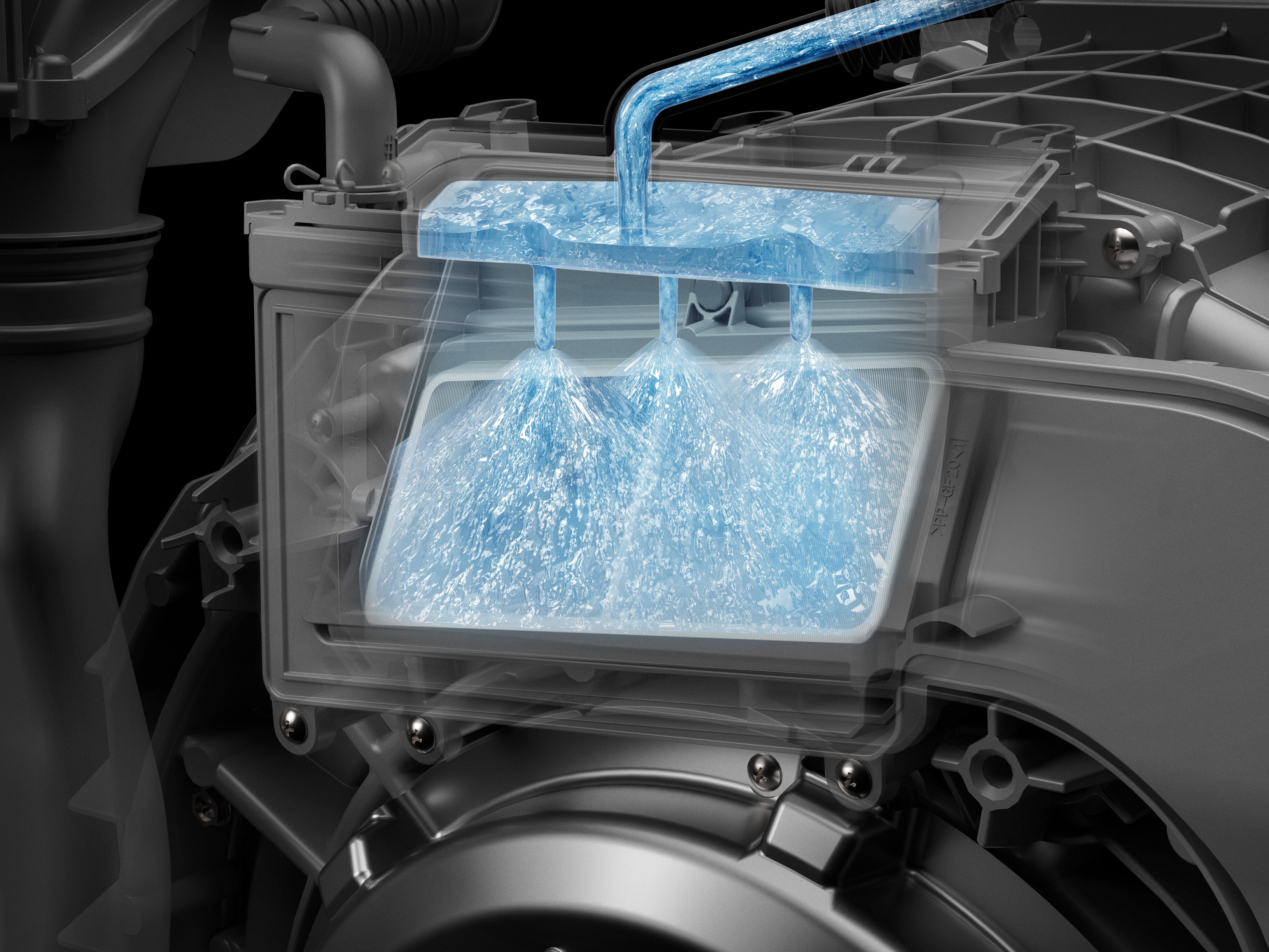 今回新たに、P&Gと共同で「アリエールMiRAi高濃度洗浄」コース(*7)を開発しました。高濃度の洗剤液で洗浄する行程を長くすることで、落としにくい油汚れに、より効果的にアプローチできるP&Gの知見から、日立の洗浄機能「ナイアガラ洗浄」の特長である高濃度洗剤液で洗う行程を標準コースより延長しています。これにより、「アリエールMiRAi」の洗浄力をさらに引き出しました。本コースは、「洗濯コンシェルジュ」アプリのダウンロードコース(*8)に追加しています。