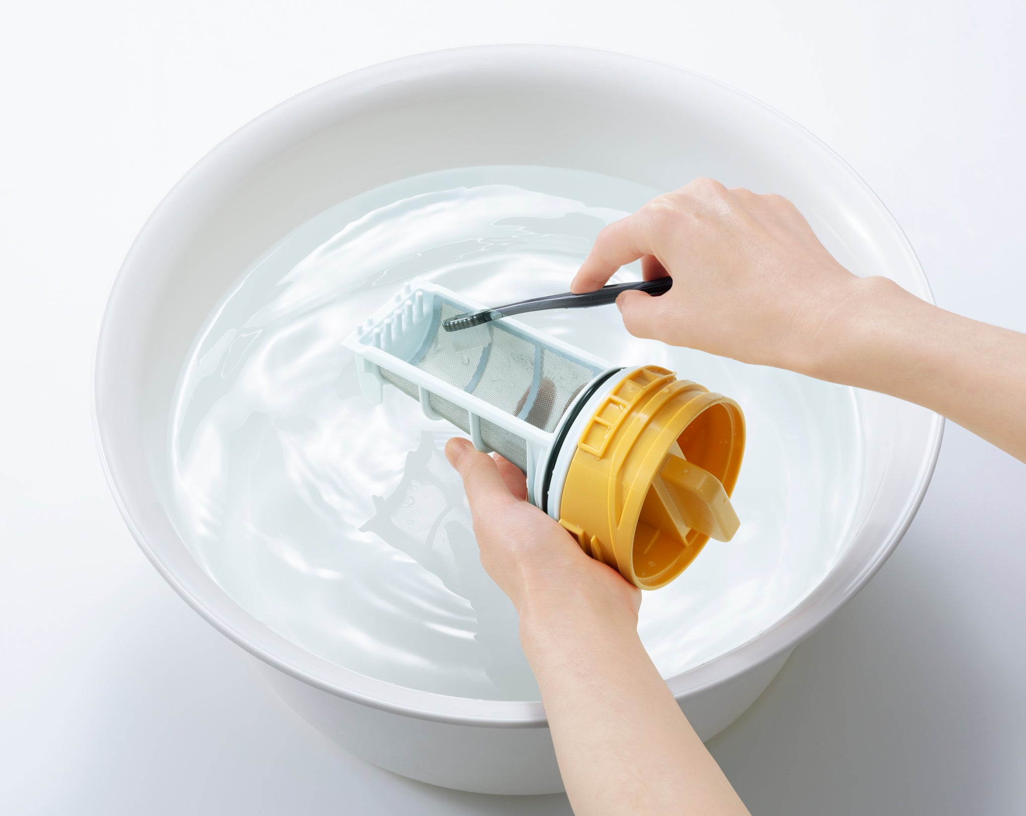 本製品は、乾燥時のホコリや糸くずを次の洗濯運転時に洗い流し、「大容量糸くずフィルター」へ集約することで、乾燥フィルターをなくし、お手入れの手間を軽減する「らくメンテ」を引き続き搭載(*4)しています。また、洗濯槽に加え、乾燥経路(保護フィルター/熱交換器)やドアパッキンといった洗濯機内部を念入りにお手入れする「らくメンテ洗浄」コース(槽洗浄4時間)を新採用しました。これにより、「乾燥経路自動おそうじ」で抑えていた乾燥効率の低下をさらに抑えることができます(*5)。本コースは、お客さまがお手入れしたいタイミングで運転することができ、定期的なお手入れをおすすめしているため、使用状況に応じて操作部でお知らせします。さらに、「大容量糸くずフィルター」をお手入れがしやすいラウンド形状に変更しました。
