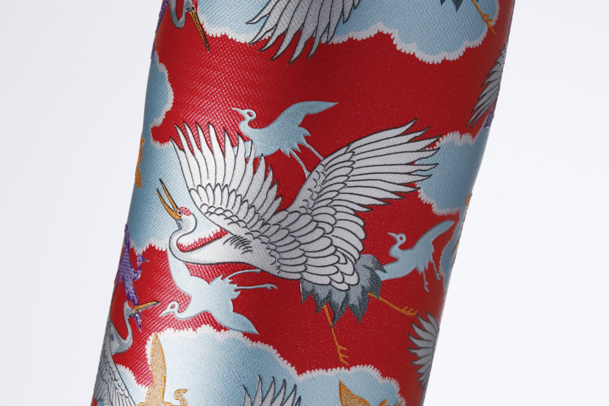 「雲間鶴」といわれ雲中を飛翔する鶴が描かれています。鶴は長寿の象徴とされたおめでたい柄です。