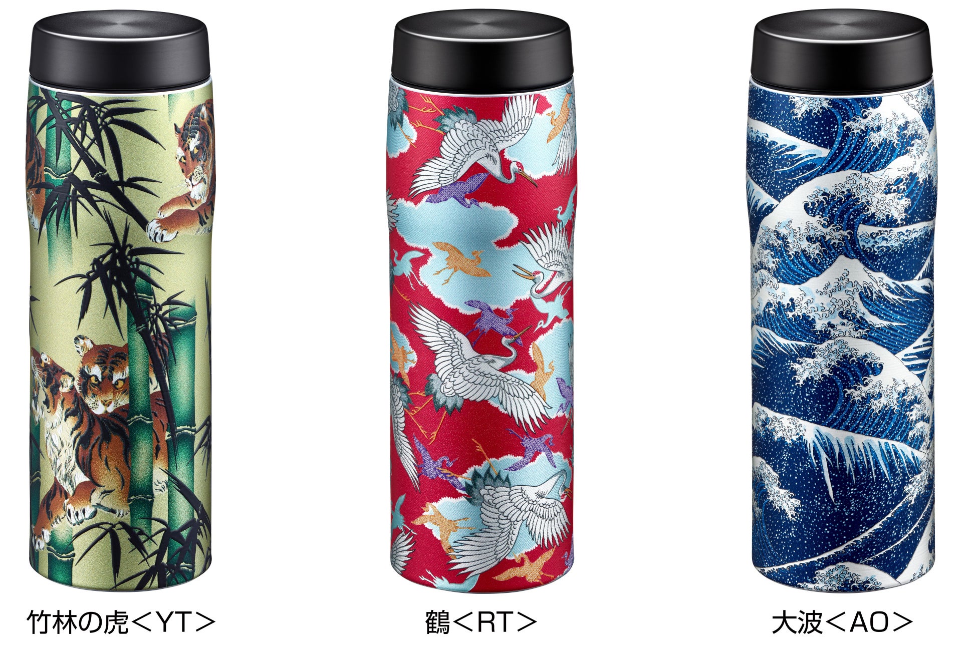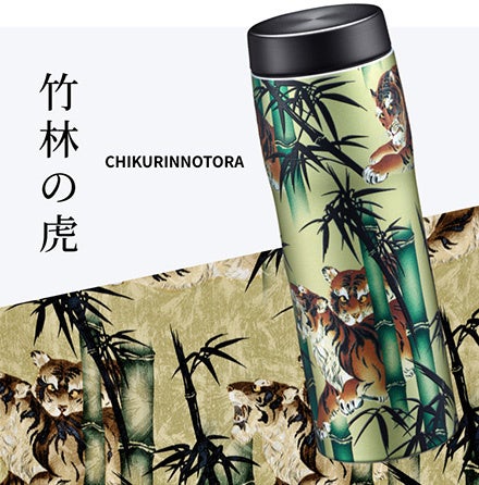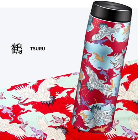 「京友禅」の手捺染工場として大正時代に創業した老舗の亀田富染工場(Pagong)とタイガー魔法瓶がコラボレーション。豊かな色彩と線密な3種類の柄を真空断熱ボトルに再現しました。