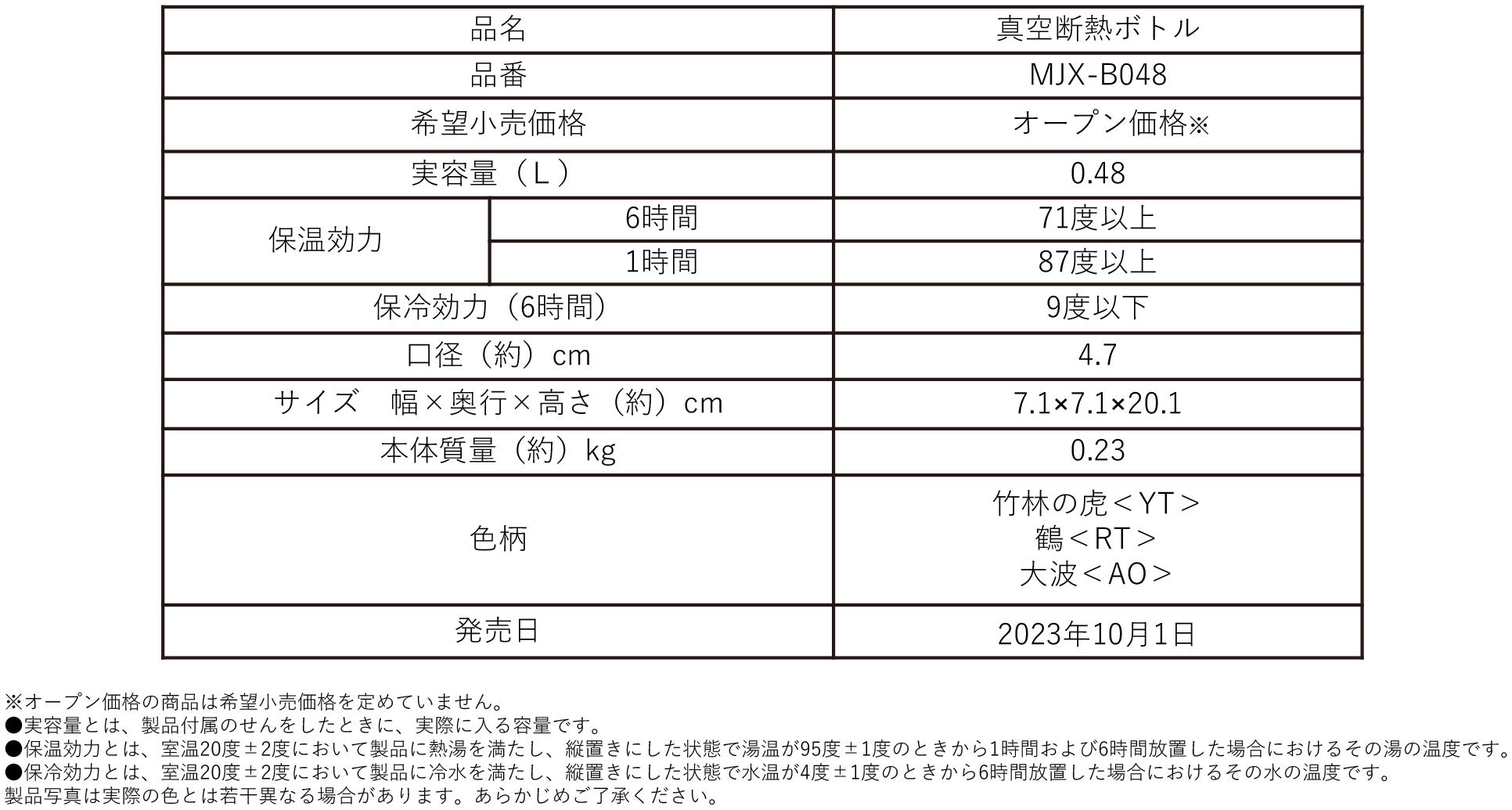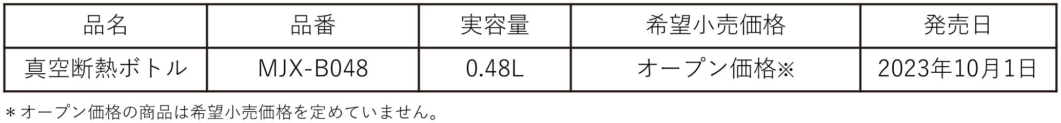 熱制御テクノロジーで世界をリードするタイガー魔法瓶株式会社(社長:菊池嘉聡、本社:大阪府門真市)は、「真空断熱ボトル MJX-B048」を2023年10月1日(日)に発売いたします。