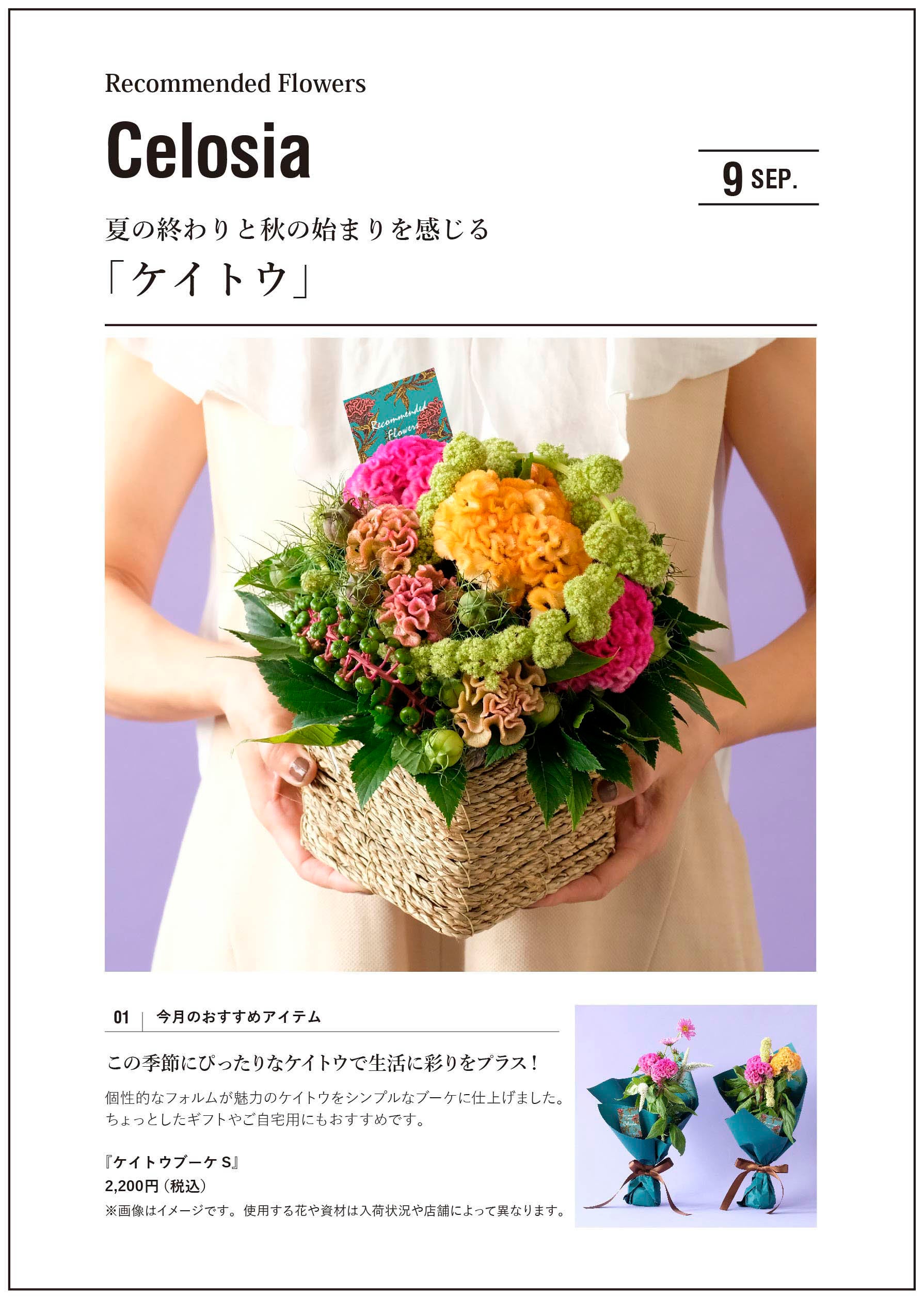 夏の終わりと秋の始まりのこの時期にぴったりな「ケイトウ」敬老の日のギフトにもおすすめのアイテムを展開