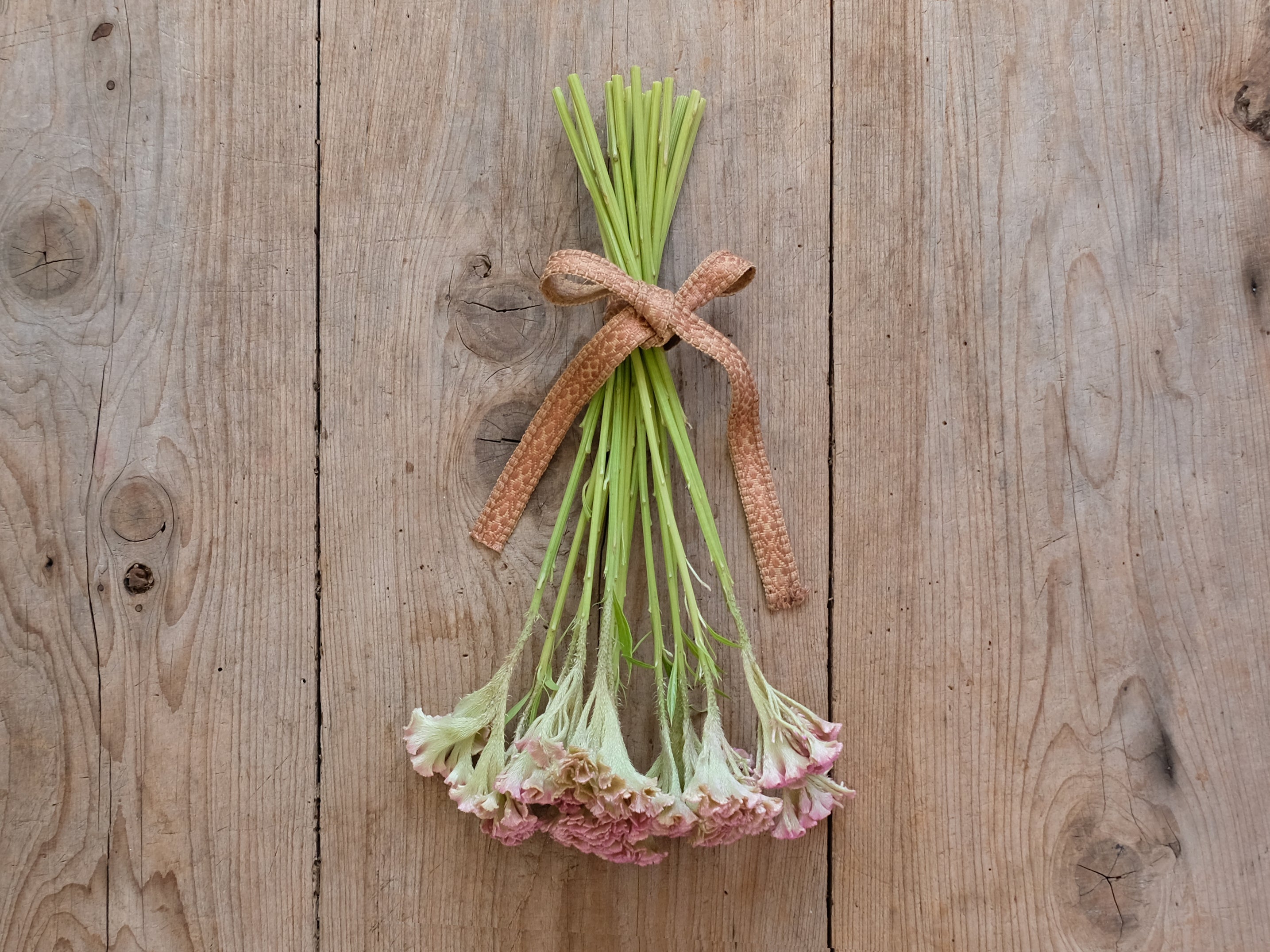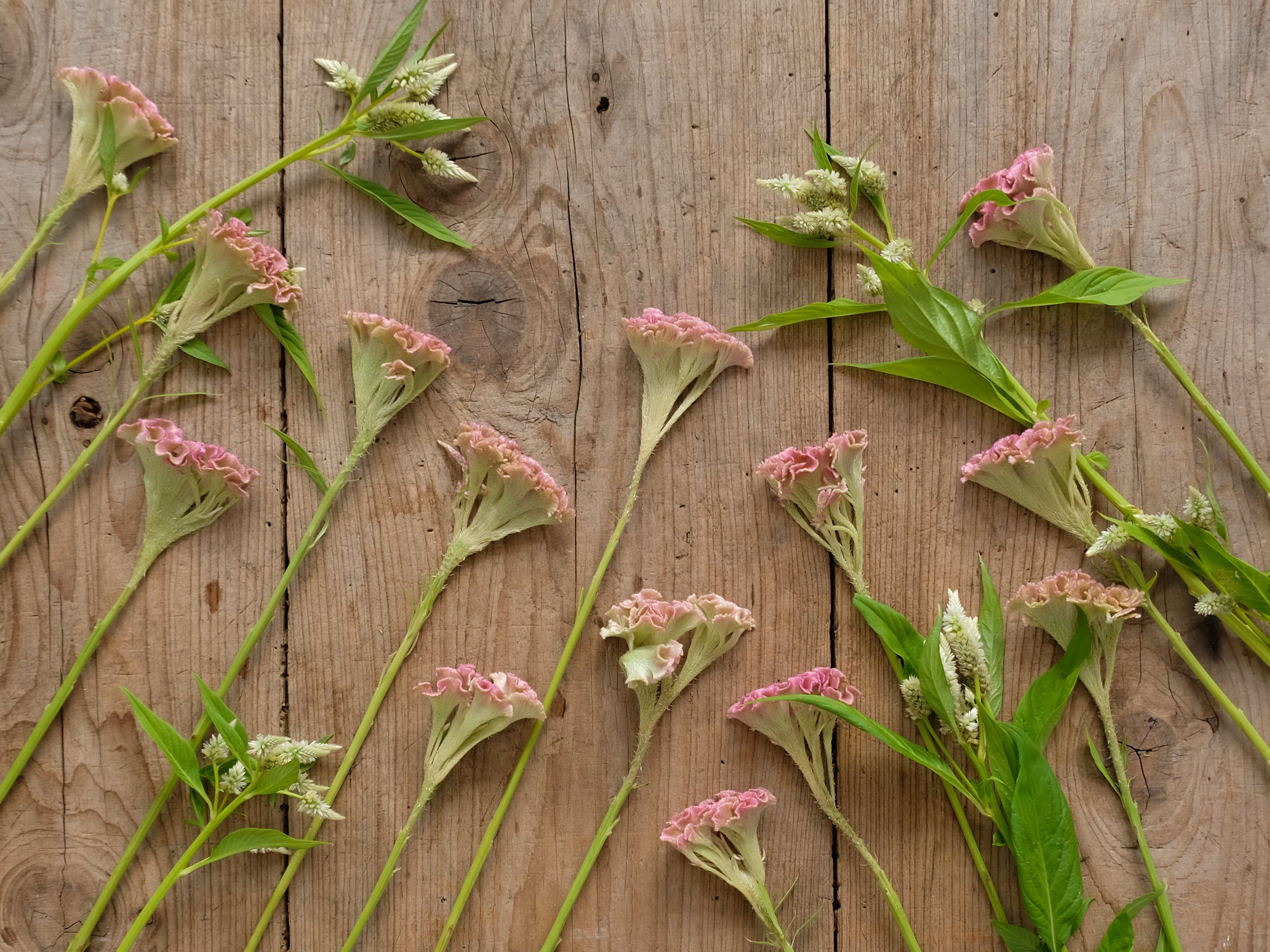 左下:ケイトウはとても長持ちする花ですが、茎の途中で折れてしまう場合も。