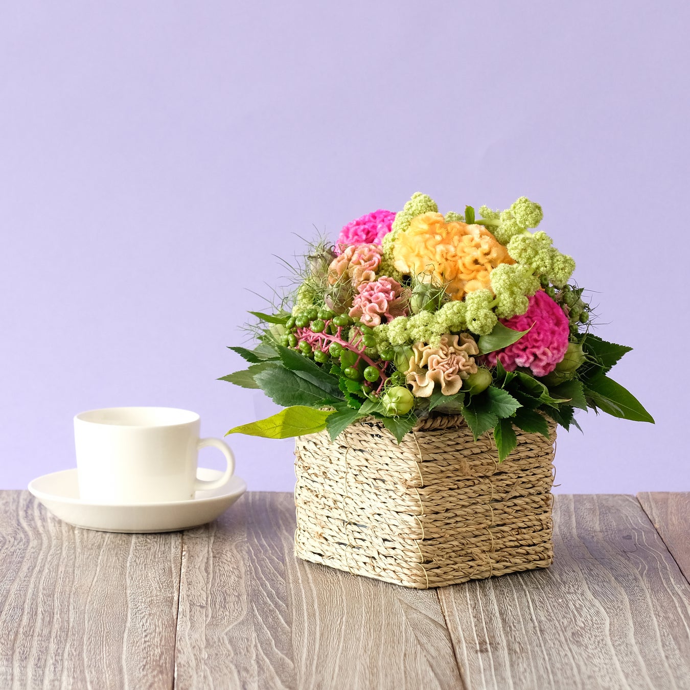 今回は、そんな夏の終わりと秋の始まりを感じるこの時期にぴったりなケイトウを、ブーケとアレンジメントに仕上げてみました。暑い夏にも強くお手入れも楽ですよ。9月18日の敬老の日のギフトやご自宅での快適な暮らしにぜひお選びいただけると嬉しいです。