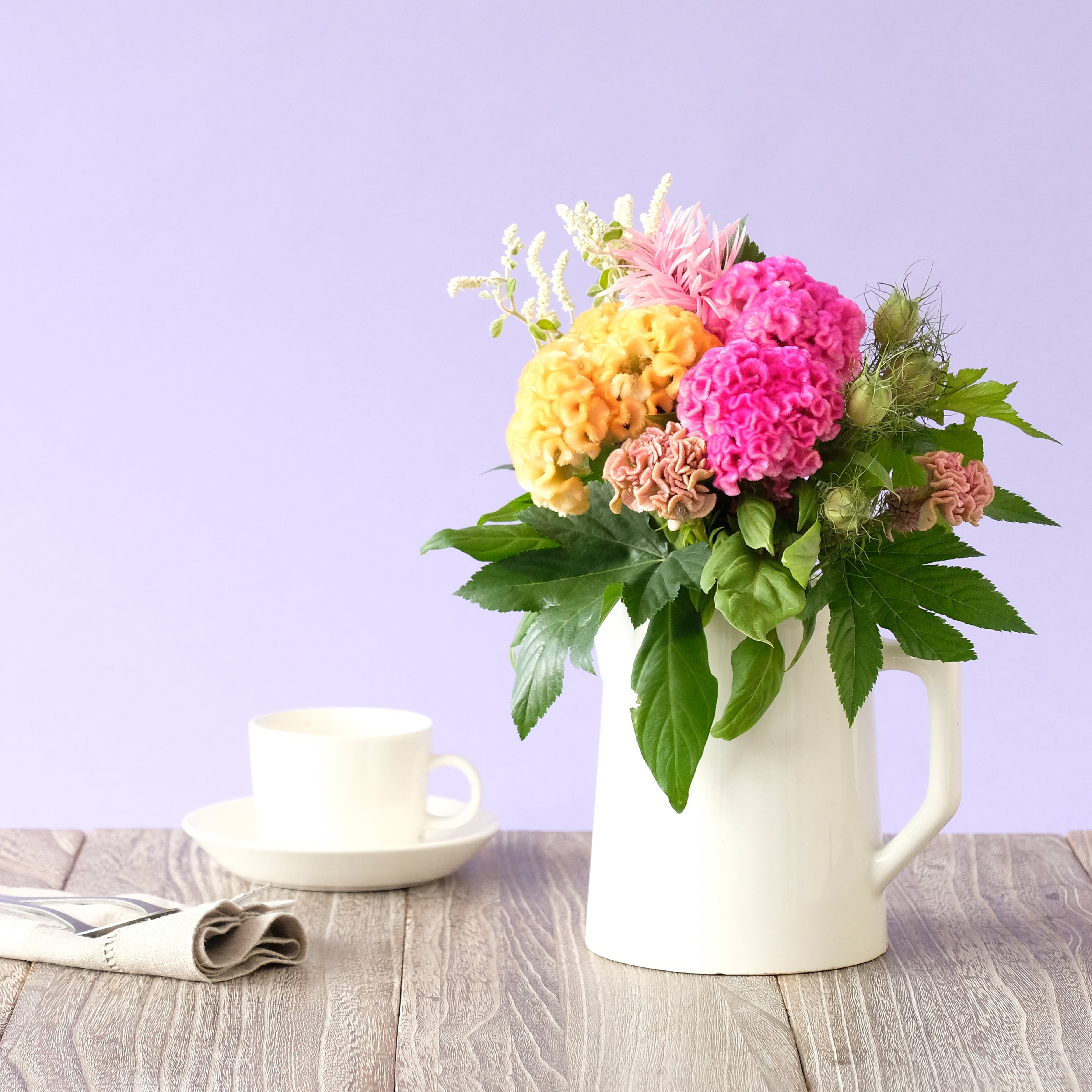 お手入れ簡単なケイトウで、夏の終わりと秋の始まりを感じる花あしらいを