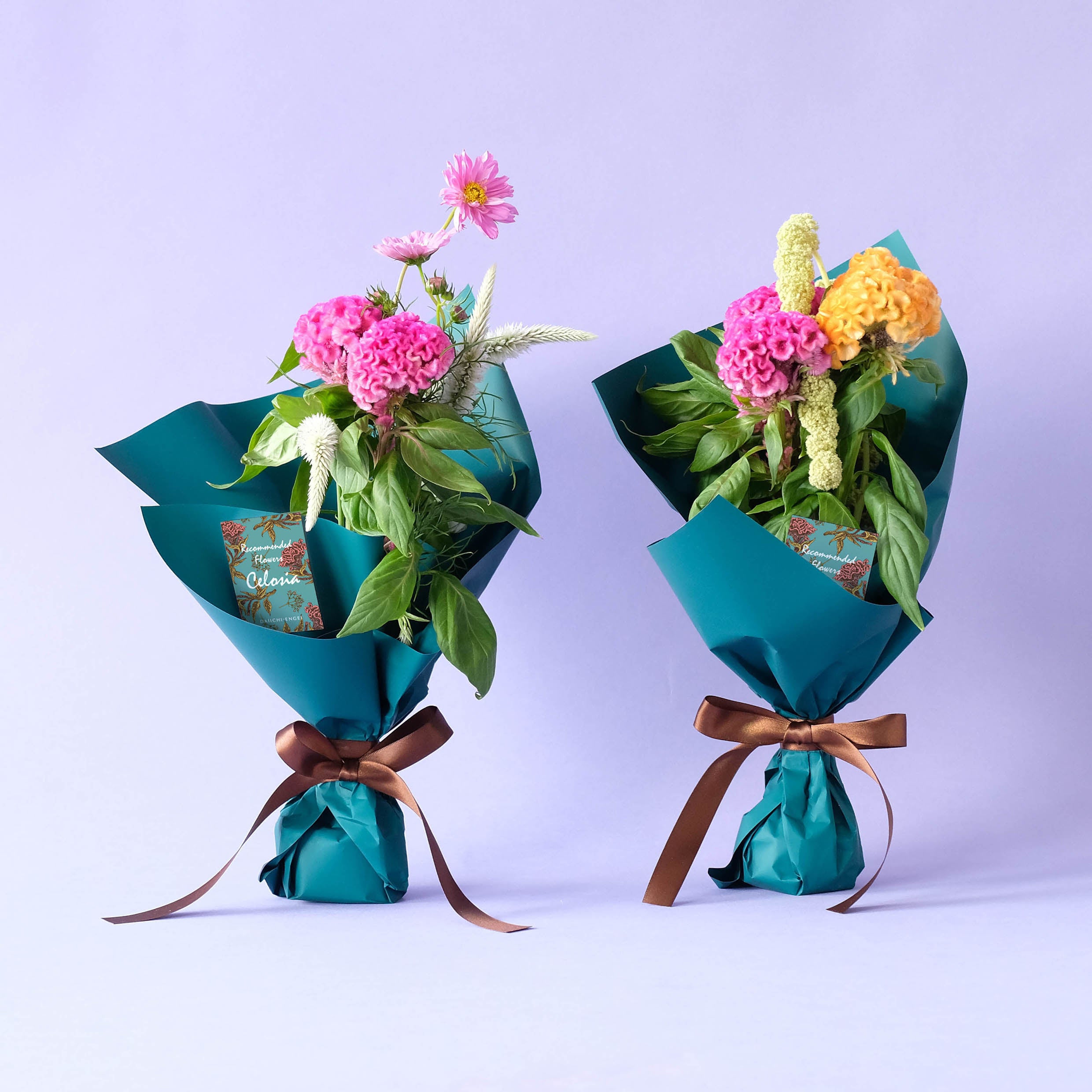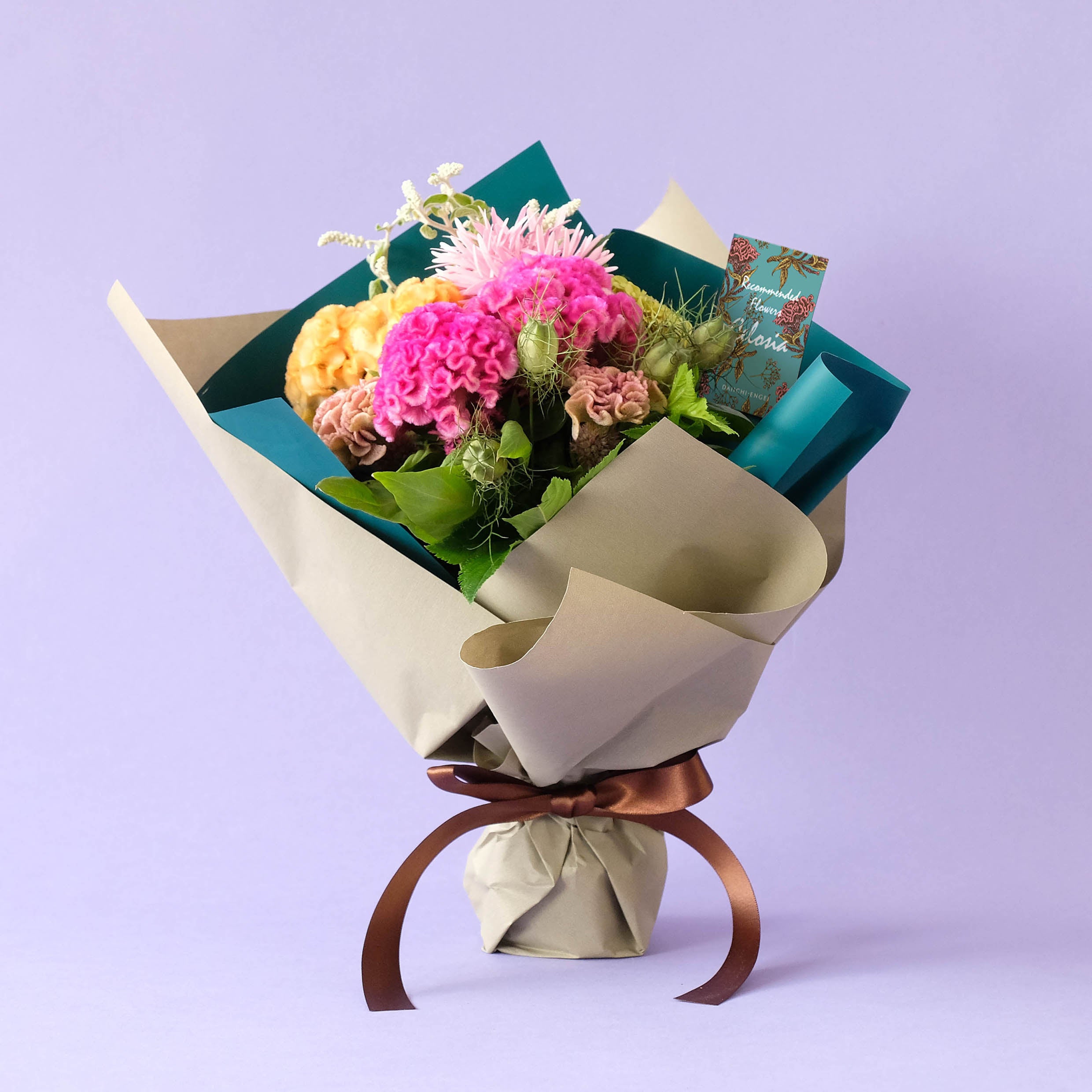 ショップおすすめのケイトウを程よいボリュームのブーケに仕上げました。季節の贈り物におすすめです。