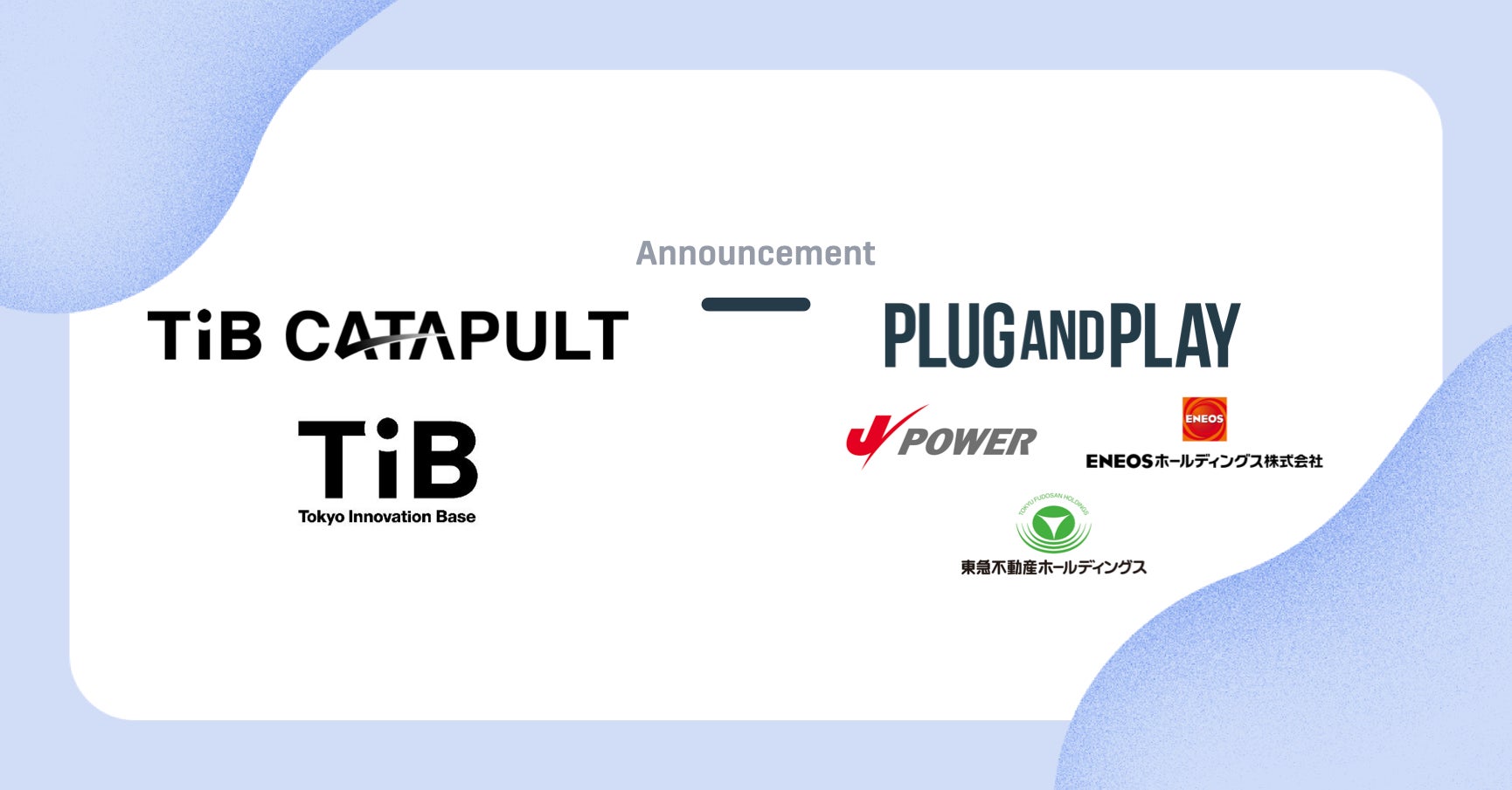 Plug and Play Japan株式会社(本社:東京都渋谷区、代表取締役社長:ヴィンセント・フィリップ、以下「Plug and Play Japan」)は、東京都(知事:小池百合子)が実施するグローバルイノベーションに挑戦するクラスター創成事業(TIB CATAPULT、以下「本事業」)の参画事業者(クラスター)としてENEOSホールディングス株式会社(以下「ENEOS」)、電源開発株式会社(以下「Jパワー」)、東急不動産ホールディングス株式会社(以下「東急不動産」)とともに採択されたことをお知らせいたします。