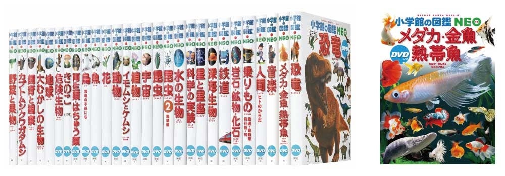 恐竜、動物、植物など計28タイトルに及ぶ学習図鑑をはじめ、ハンディサイズが好評の「NEO POCKET」シリーズや児童に人気の紙工作本「小学館の図鑑NEOのクラフトぶっく」シリーズなど、刊行形態は多岐に渡る。