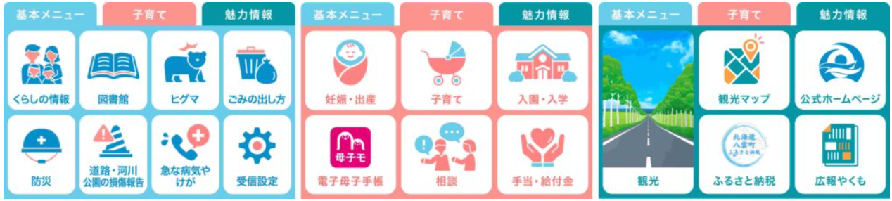 「基本メニュー」「子育て」「魅力情報」のメニューから様々な情報を検索することが可能になりました。