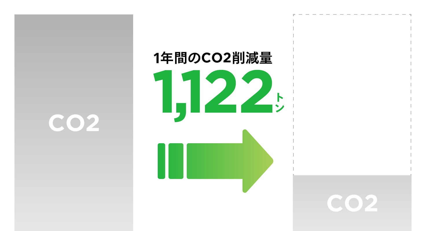 本プロジェクト開始から1年間のCO2削減量は1,122トン※でした。1日の走行距離が自家用車に比べ7倍程度となるタクシーのEV化が引き続き進めば、社会全体の脱炭素化への大きなインパクトとなります。