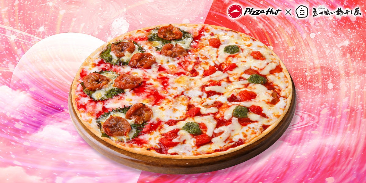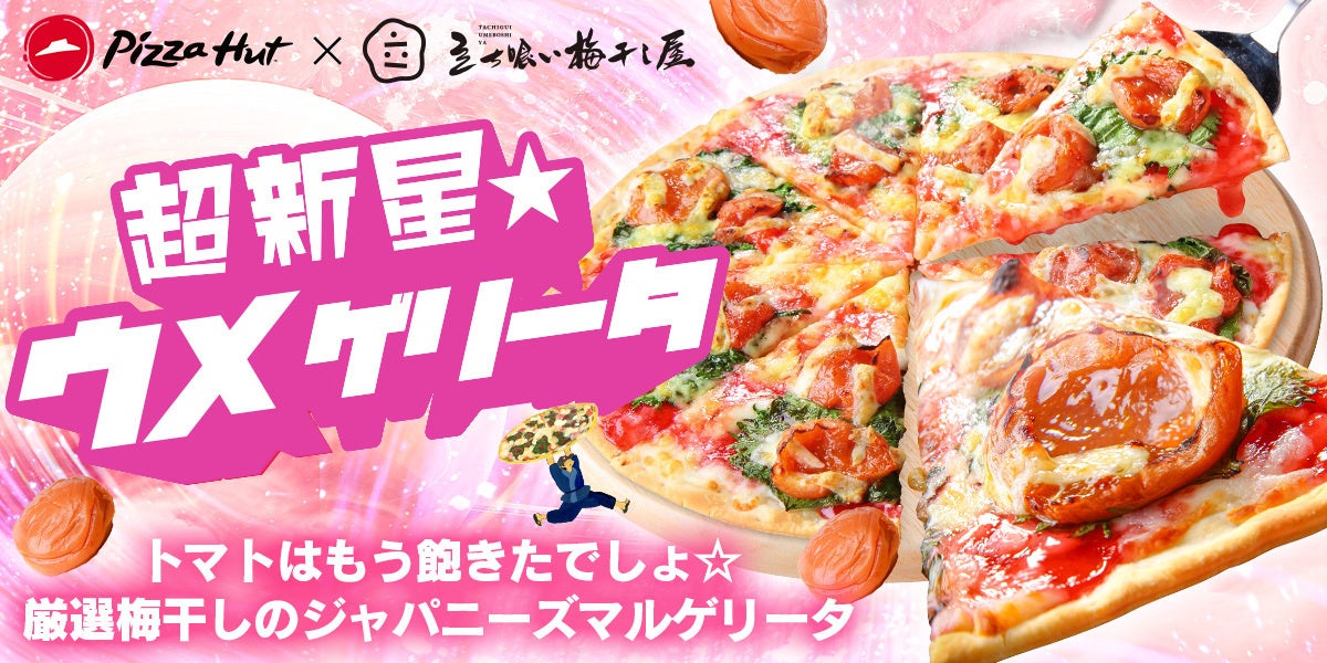 ウメぇ炸裂!訪日外国人もびっくりの「梅干し」を使ったピザ「超新星☆ウメゲリータ」の最終形態は、人気定番ピザ2種がハーフ&ハーフでおトクに楽しめちゃう!