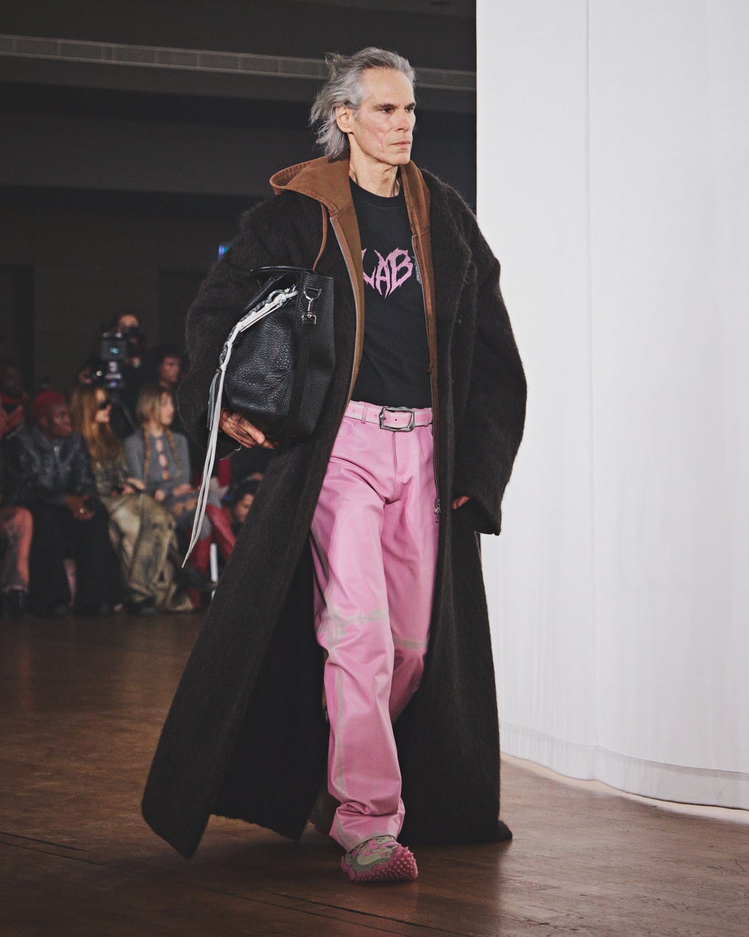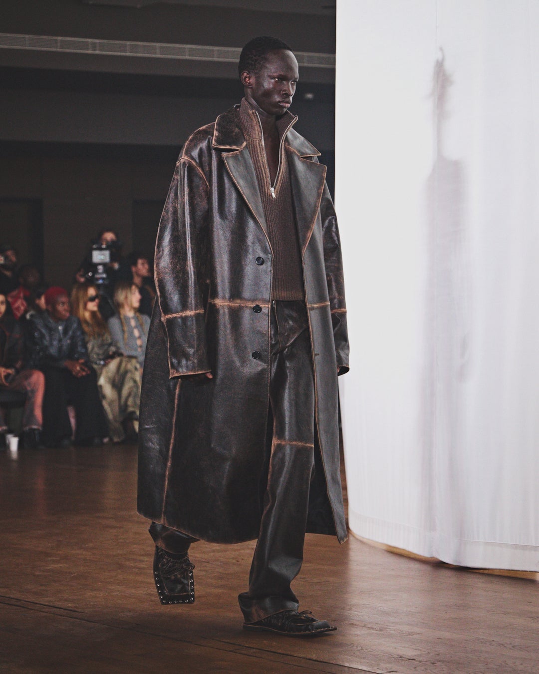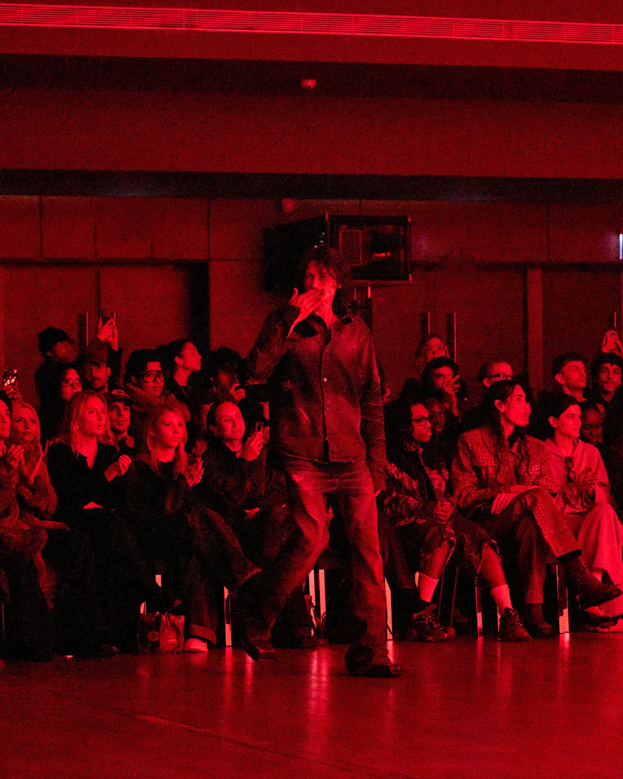 プレゼンテーションには、モデル、タレント、さらにはストリートキャストによる約20名の風になびく人物像が登場しました。氷点下に染まった彼らは、コテージを温めるために薪を集めてきたような者から、長い極夜を耐え抜くための装備を身にまとう者まで、多様な姿を見せました。