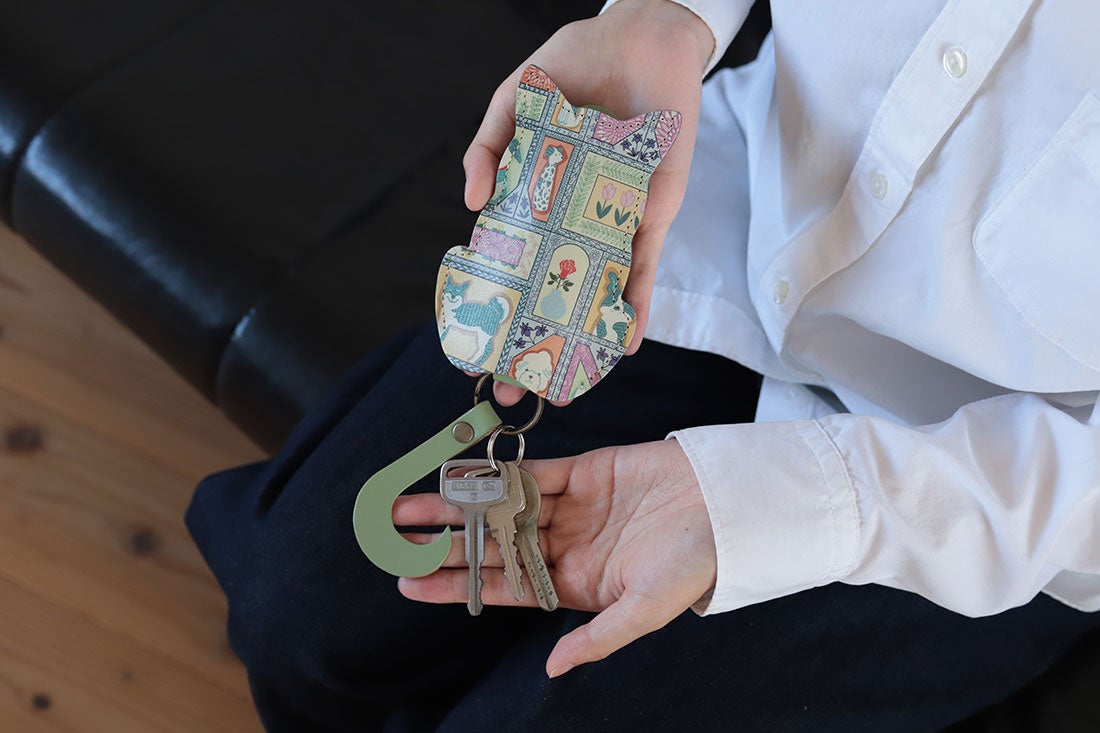 カバンやベルトなどにつけることができ、しっぽを引っ張ると鍵が飛び出るユニークな仕掛けのキーケースです。