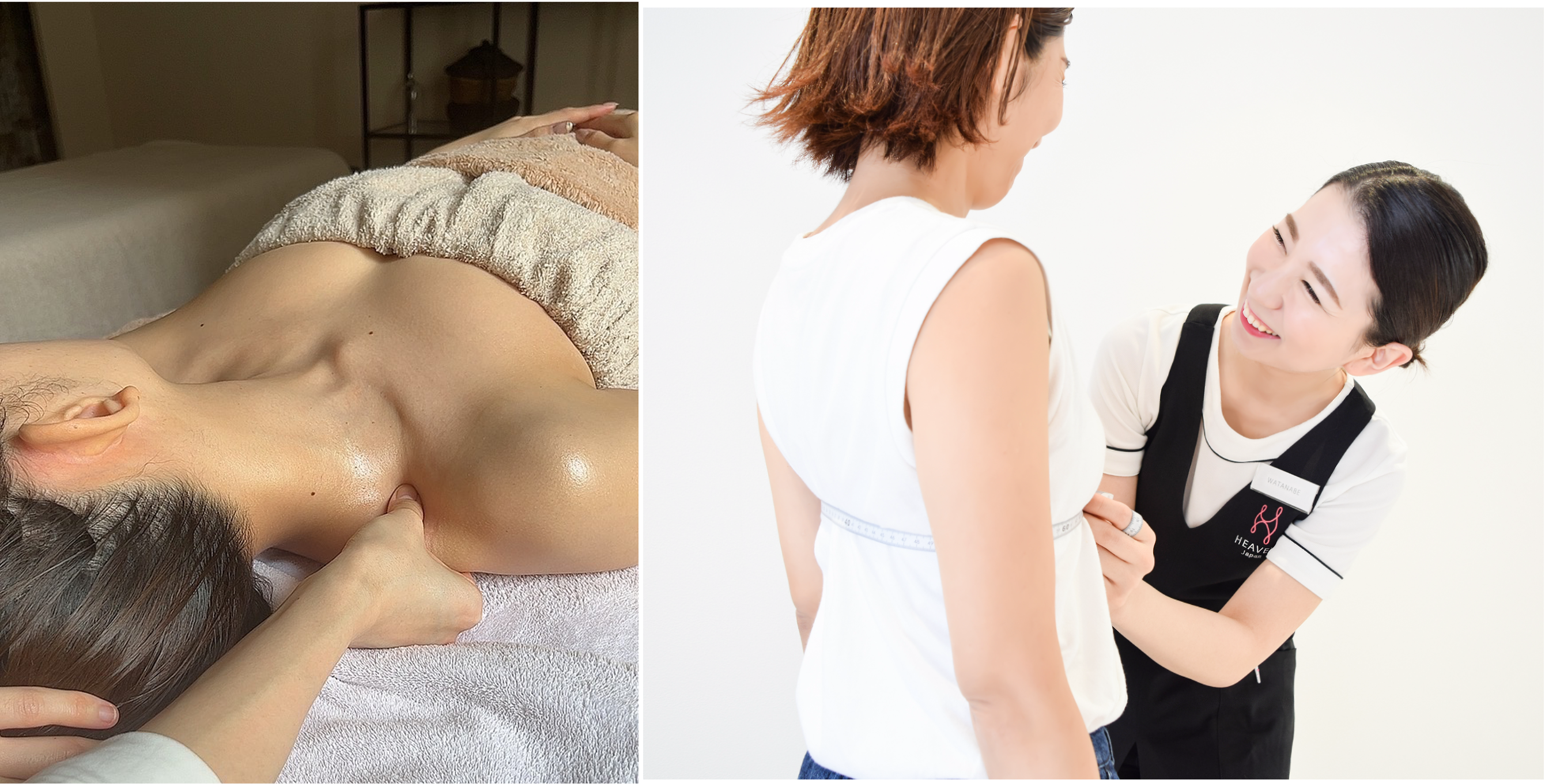 一人ひとりの女性の心と体に寄り添う「適正下着®」の開発から販売までを行う株式会社HEAVEN Japan(所在地:大阪府河内長野市、代表取締役:松田崇)は5月11日、エステサロン「クレールアンジュ」(所在地:大阪府大阪市、代表:岡田実歩)と共同で、店舗の定休日を有効活用し、デコルテマッサージと適正下着フィッティングの双方のサービスを体感してもらうコラボイベントを開催いたしました。