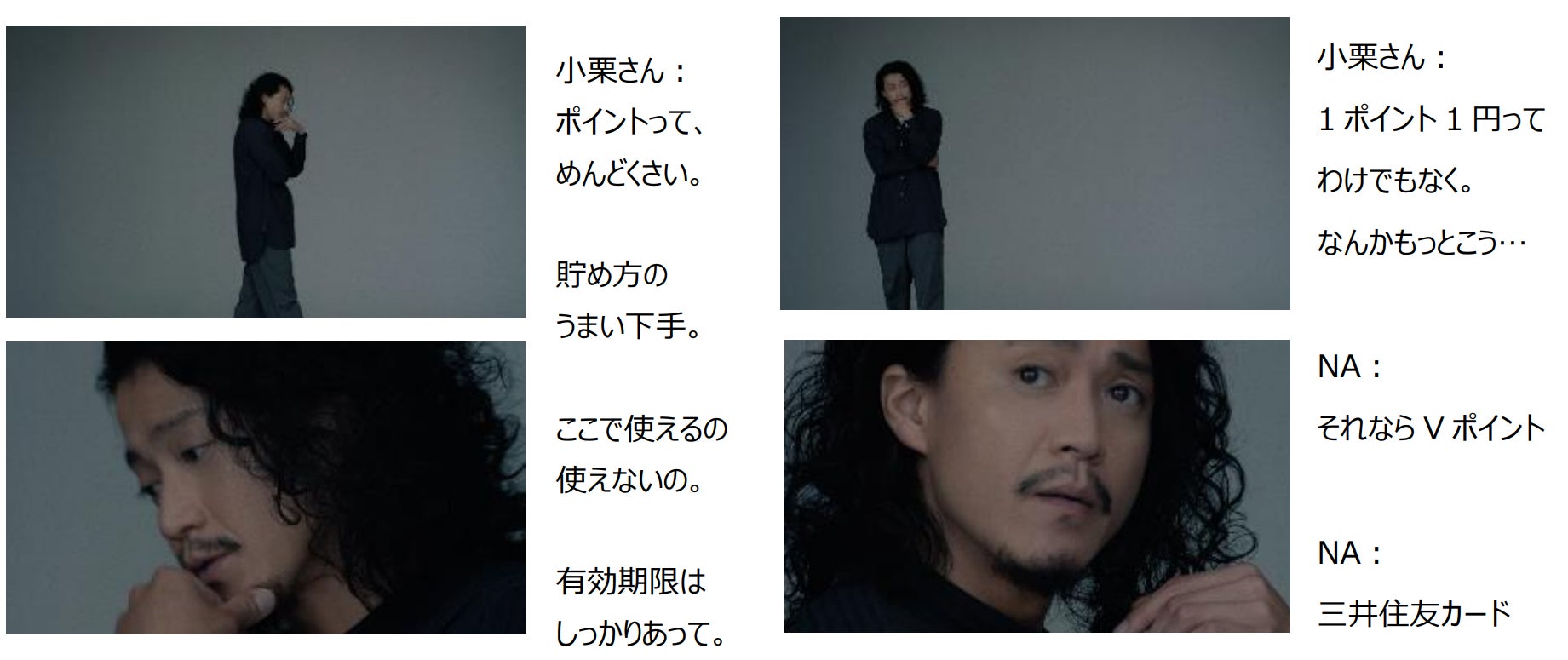 - 新TV-CM「Vポイント、の表情(飯塚篇)」(15秒)ストーリーボード