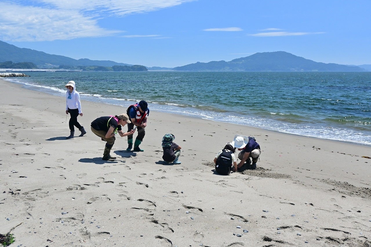 道の駅高田松原 西側 大屋根休憩スペースに集合し、砂浜と古川沼でカニの観察を実施。高田松原海岸では、砂浜で「スナガニ」掘りを体験。「奇跡の一本松」周辺の古川沼では、ヨシ原(アシ原)のある干潟などにすむ「アシハラガニ」や、汽水域のやわらかい泥の干潟にすむ「ヤマトオサガニ」を観察します。