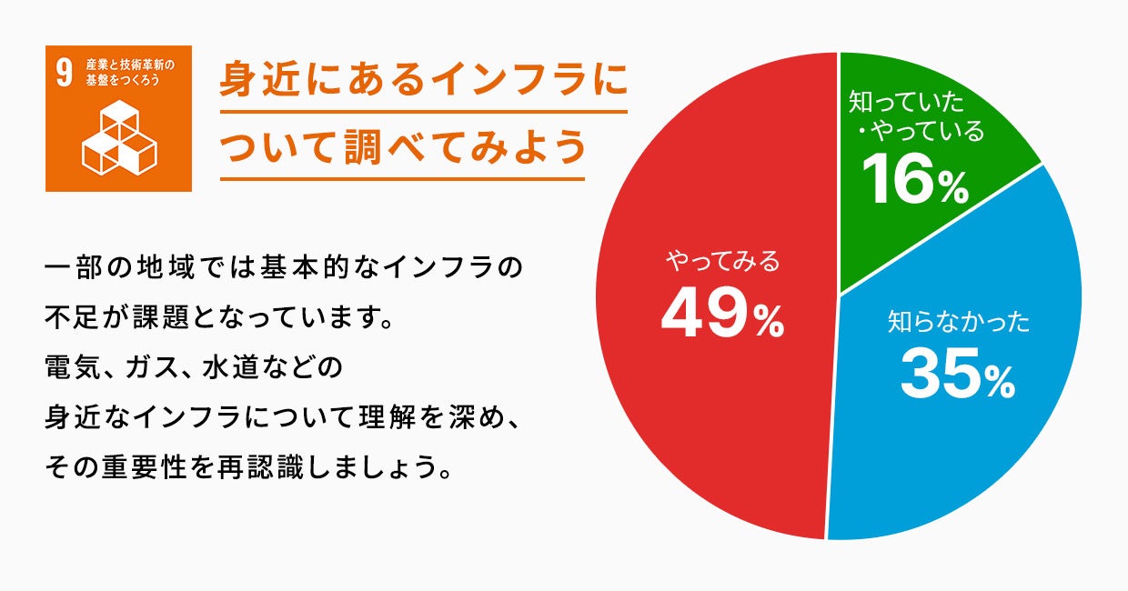 他にも、ゴール9に関しては、「やってみる」と回答した割合が約50%と、全体と比較しユーザーの行動意欲が高いことがうかがえる結果となりました。地震などの自然災害に対する関心が高まっていることが考えられます。