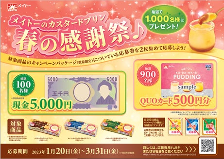 合計1,000名様に豪華賞品が当たる!「メイトーのカスタードプリン 春の感謝祭♪」