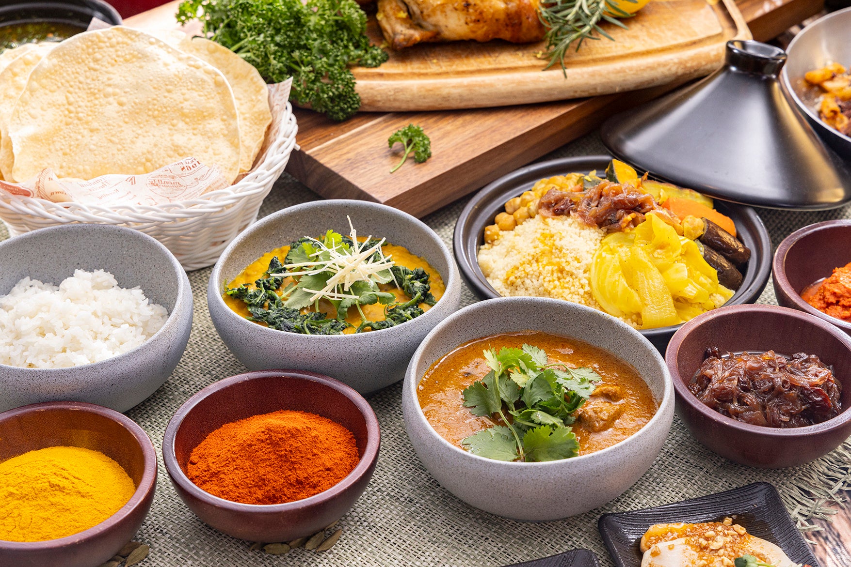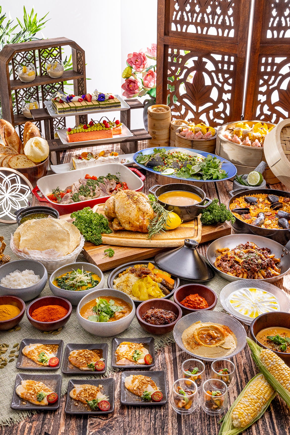 刺激的な香りと共にお届するホットディッシュやスープは世界各地のエスニック料理が勢揃いします。「メキシカンストリート スィートコーンスープ」や韓国風冷製スープ「ネング」、ケイジャンスパイスをふんだんに用いた「ルイジアナ シーフードジャンバラヤ」、野菜たっぷりの「クスクス・ビダヴィ」、3種の点心、ライムとパクチーの風味が癖になる蒸し魚料理「プラーヌンマナオ」に加え、インド人総料理長のレシピでご用意する2種類の本格インドカレーも登場します。