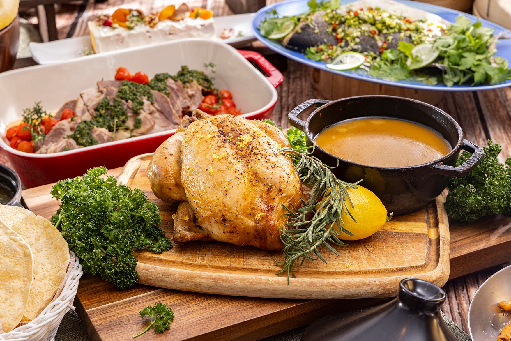 10種類もの瑞々しい新鮮野菜が並ぶサラダバーでは「青パパイヤのマリネサラダ コリアンダー」や「フムス」、「レバノン風ヨーグルトチーズ」など多彩なコンディメントをご用意。お好みに合わせてカスタマイズし、オリジナルサラダをお楽しみいただけます。チーズやシャルキュトリー、ミックスナッツなどに加え、ホームメイドブレッドコーナーでは「バゲット」や「ピタパン」、「シトラスブリオッシュ」などが揃います。