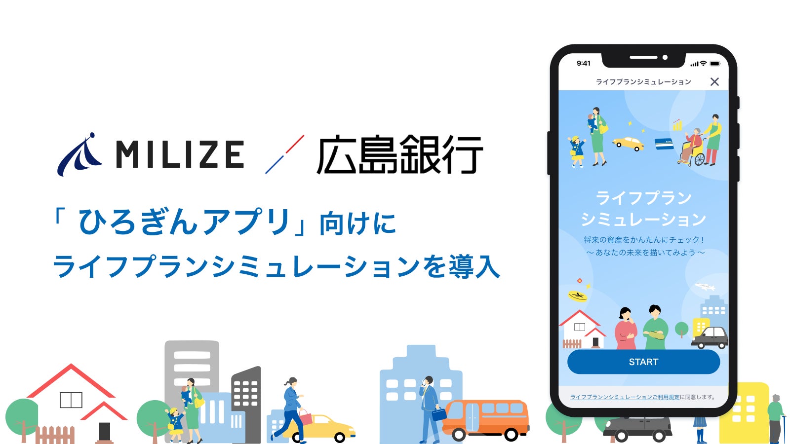 株式会社MILIZE(本社:東京都港区、代表取締役社長:田中徹、以下「MILIZE」)は、株式会社広島銀行(本社:広島県広島市、代表取締役頭取:清宗一男、以下「広島銀行」)へ、ライフプランシミュレーションを導入いたしました。