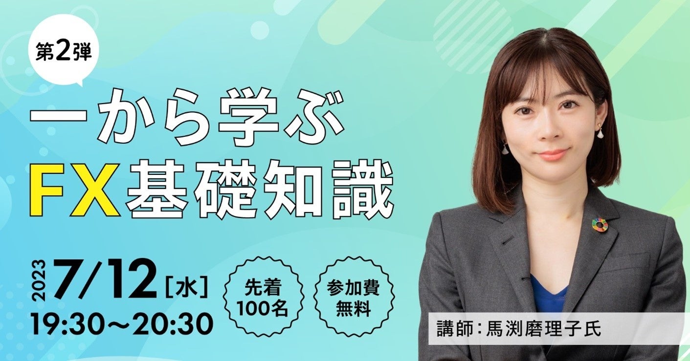 【7/12(水)オンライン開催】人気経済アナリスト 馬渕磨理子氏の大好評セミナー第2弾「一(いち)から学ぶFX基礎知識(2023年後半 為替相場の見通しと注文方法編)」