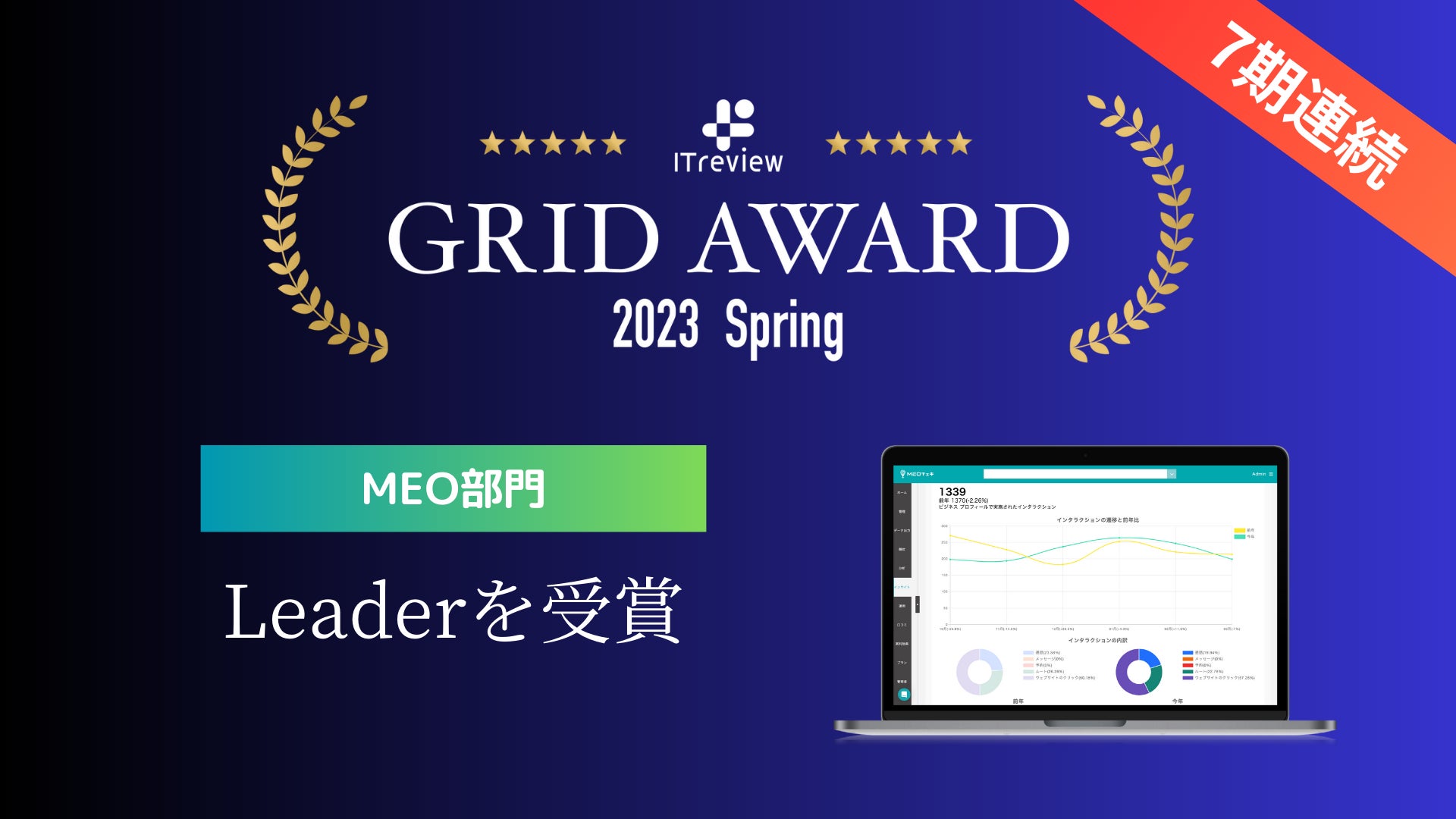 MEOチェキが「ITreview Grid Award 2023 Spring」のMEO部門において「Leader」を7期連続受賞!