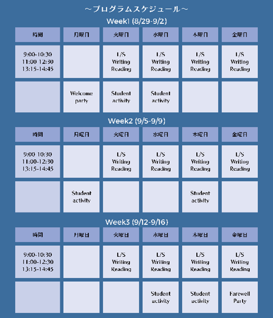 - 国内留学:「夏季短期英語研修EAP(English for Academic Purposes)」内容