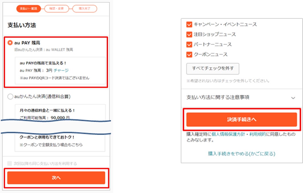 〈au PAY 残高決済のご利用方法手順〉