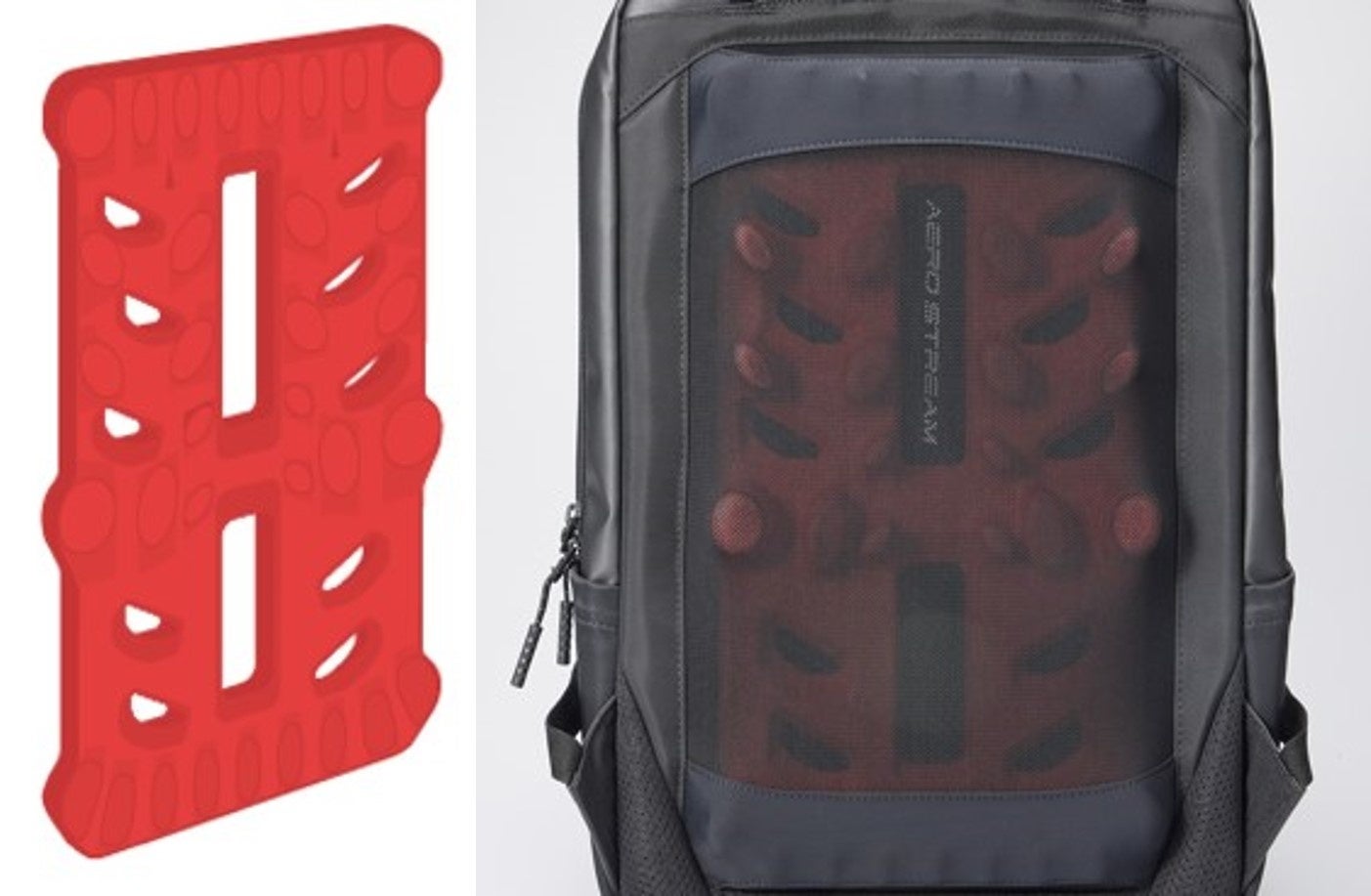 今回発売する新商品にもこれまでの「エアロストリームバックパック」シリーズ同様、一番の特徴ともいえる、バックパックの背面にEVA素材の立体成型パーツ”エアロストリームパネル”を3タイプすべての背中側に搭載。このパネルの効果で、バックパックと背中の間に空気が流れる空間ができ、バックパックを長時間背負った際の蒸れを軽減します。