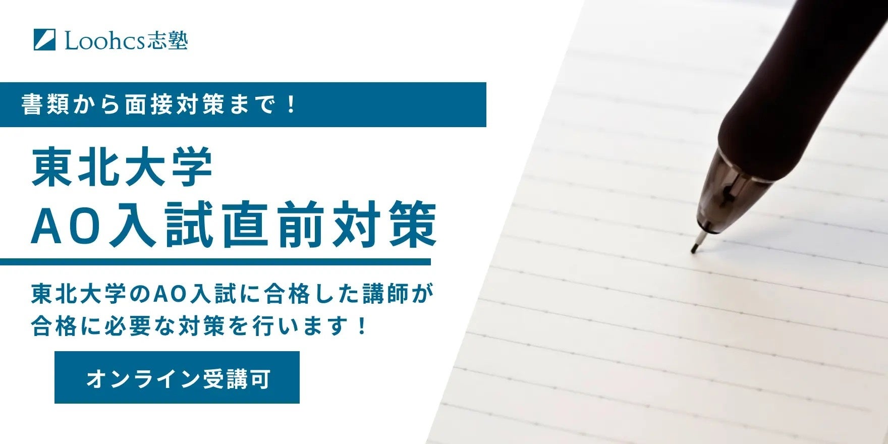 今回、Loohcs志塾仙台校が開講する「東北大学AOⅢ期入試対策パック」は、実際にAOⅡ期入試で東北大に合格した講師と豊富な指導経験を活かした東北大AO入試合格のために指導を行います!
