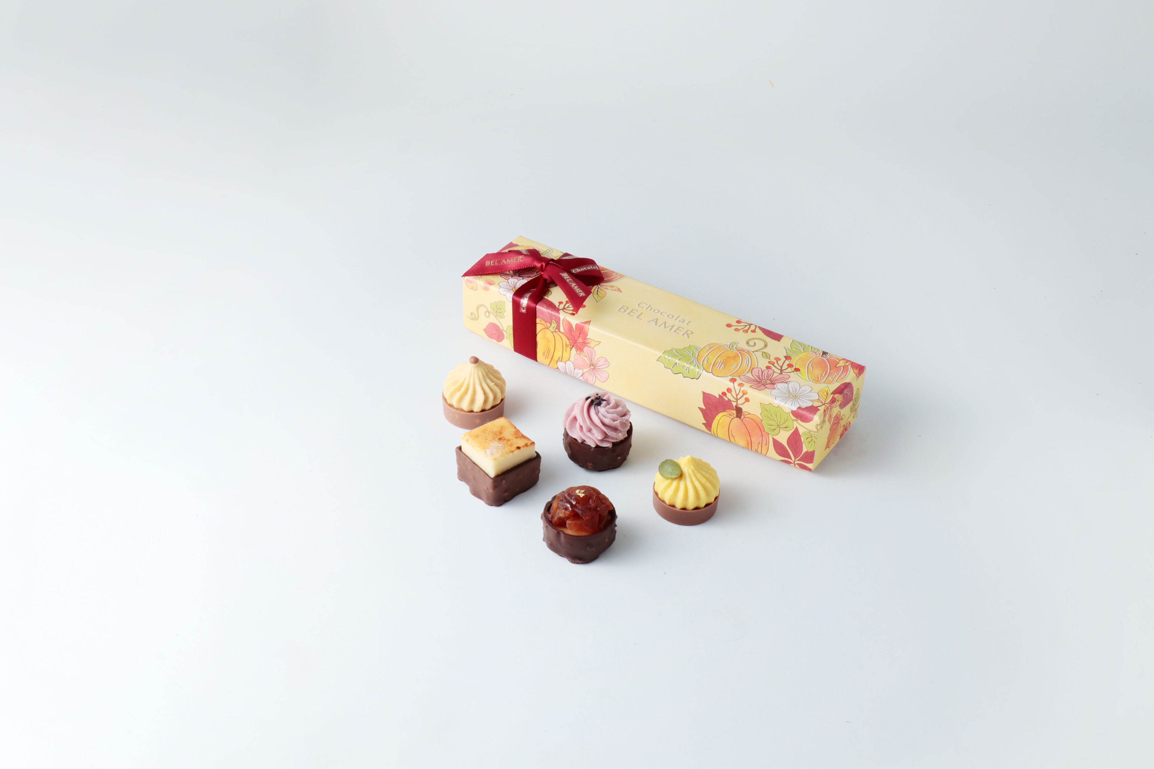 カボチャやプラリネ、フランボワーズなどの素材を生かした、6種の味の組み合わせをお楽しみください。
