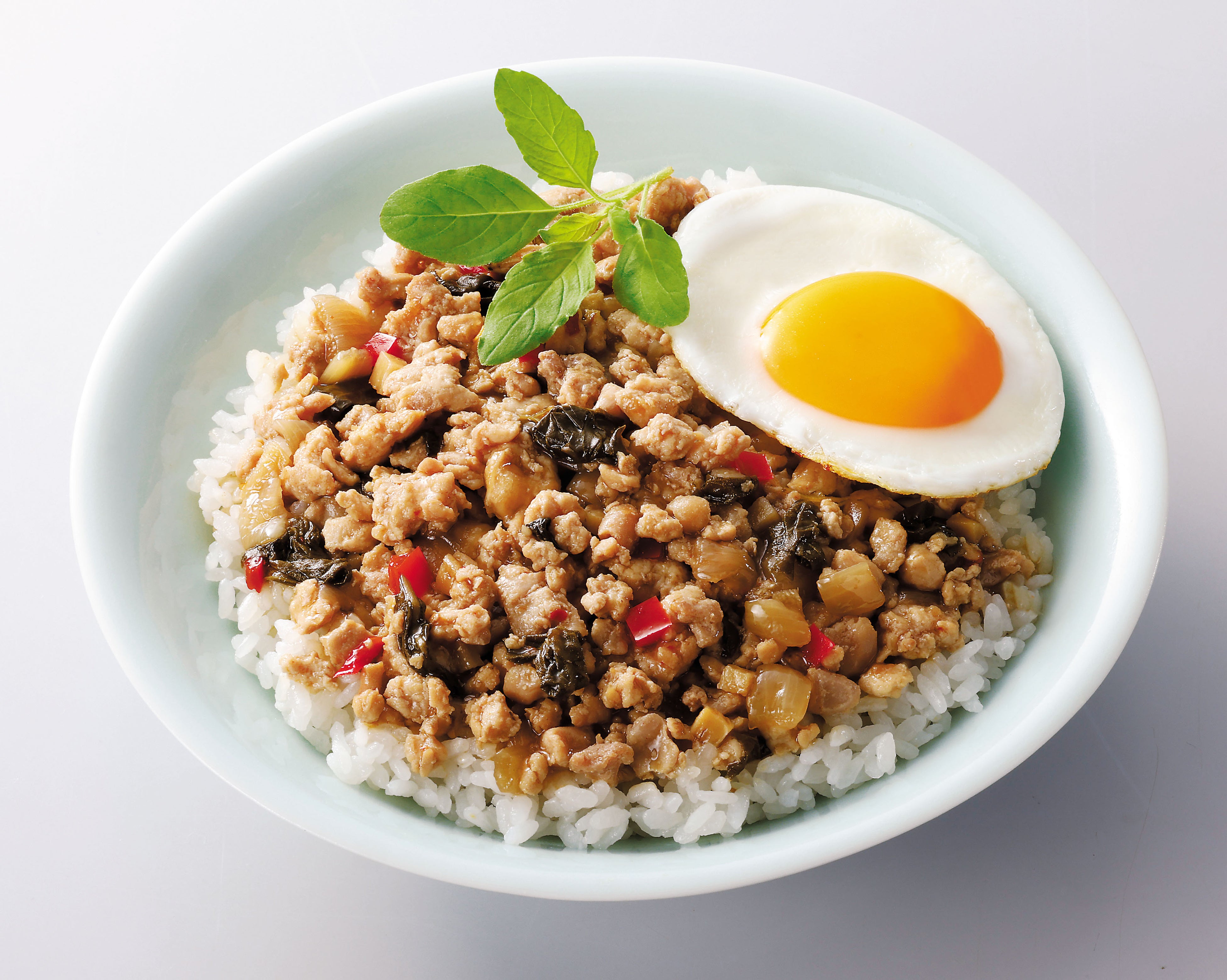 「際立つ香り!ガパオライスの具」は、本場タイの味であるホーリーバジルとレモングラスの爽やかな風味のあとにピリッとくる辛さがポイント。玉ねぎ、鶏もも肉、鶏むね肉、赤パプリカ、筍と具沢山。お好みで半熟の目玉焼きをのせるとまろやかな味わいになり、おすすめです。
