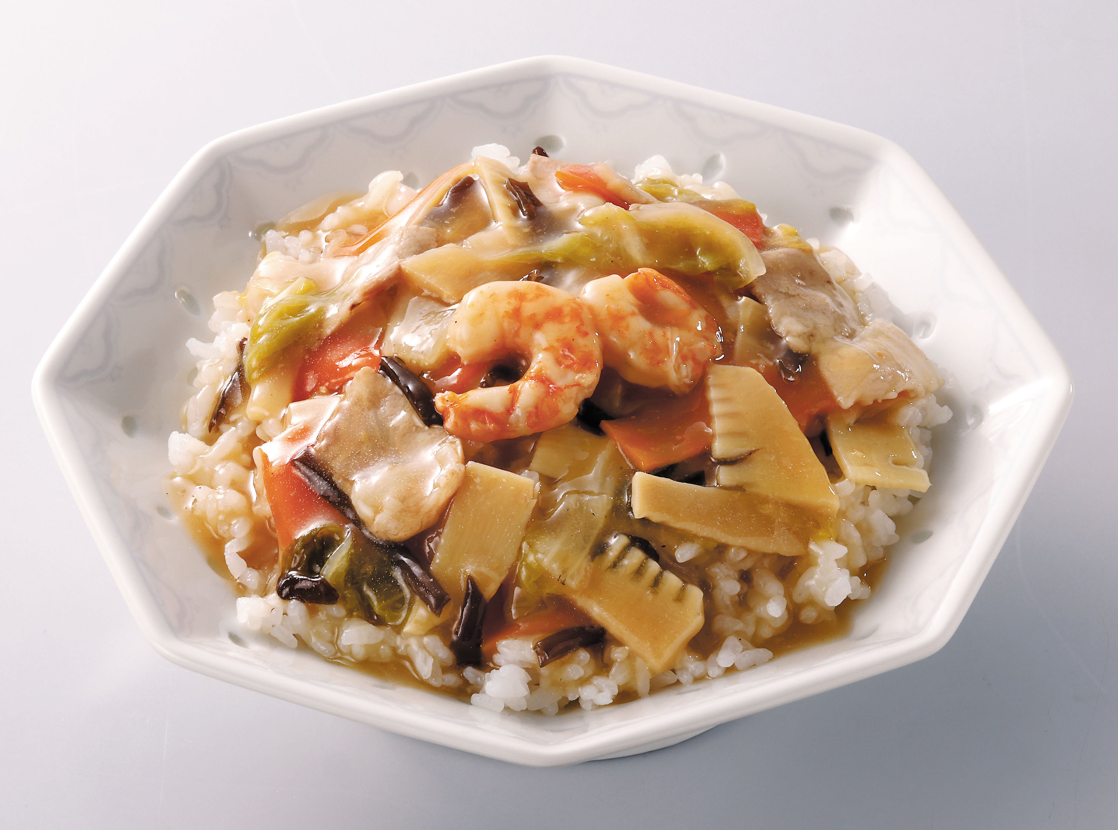 「6種の具材が入った中華丼の具」は1食で栄養バランスの取れた食事をしたい方向け。具材には白菜、にんじん、筍、木耳、豚バラ、海老を使用。彩り豊かな具材は見た目も食感も楽しめ、たっぷりのあんがご飯と絡んで満足感〇。ご飯以外にも、中華麺やかた焼きそばにかけても美味しくお召し上がりいただけます。