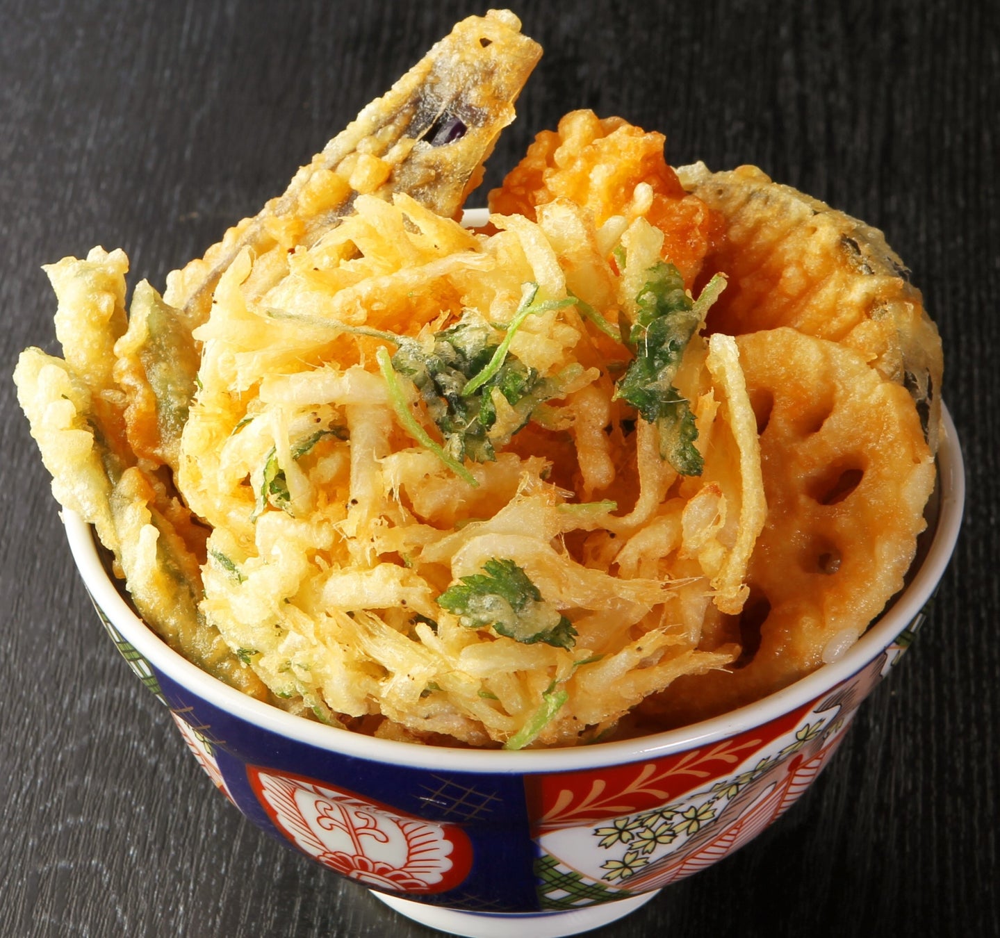 期間限定メニューの「白海老のかき揚げ」、また定番メニューの「かき揚げ」など、単品の天ぷらメニューもご用意しております。