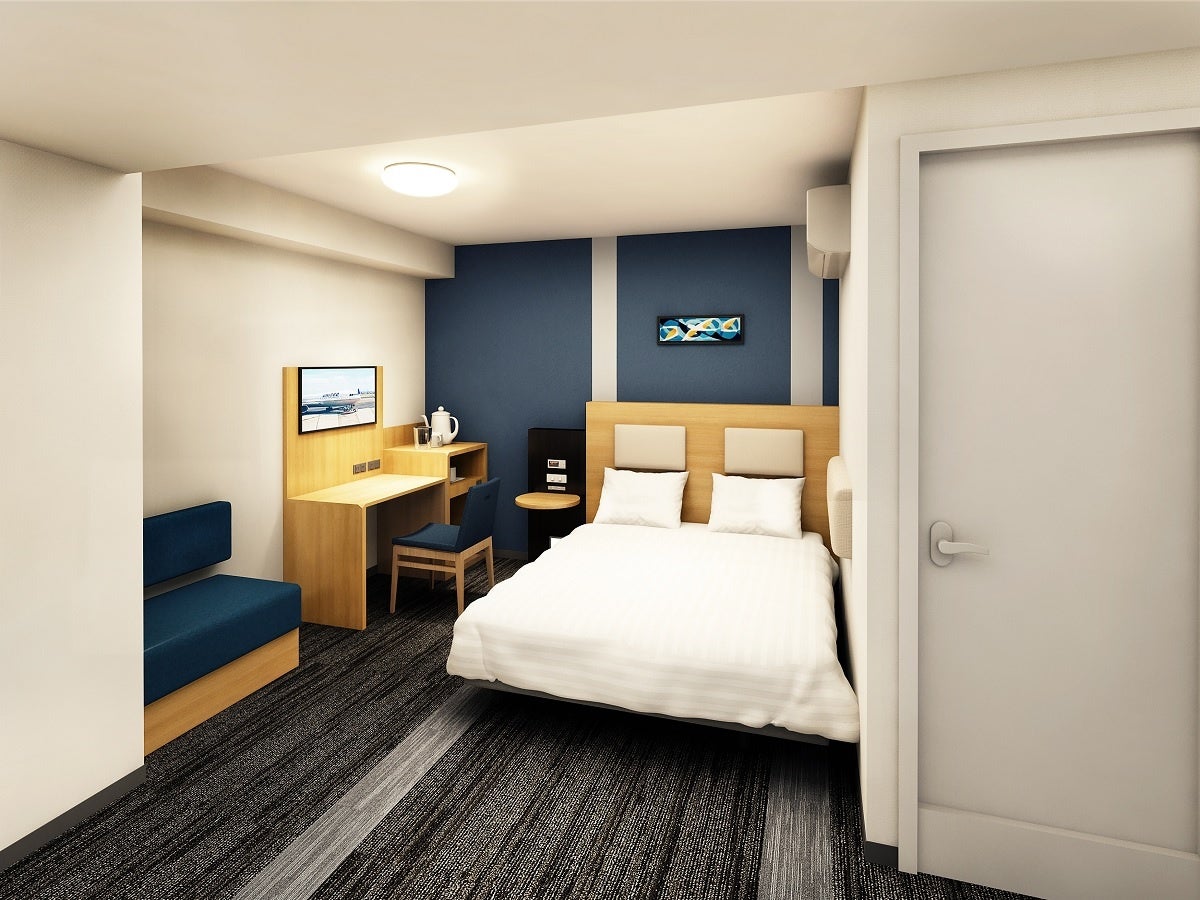 また、ベッドボードには新たにUSB Type-Aコンセントを導入し、機能面も向上します。さらに、2名でもゆったり寛げるよう、スツール(座面のみのシンプルな椅子)やソファを設置し、これまで以上に快適で落ち着ける客室へと生まれ変わります。