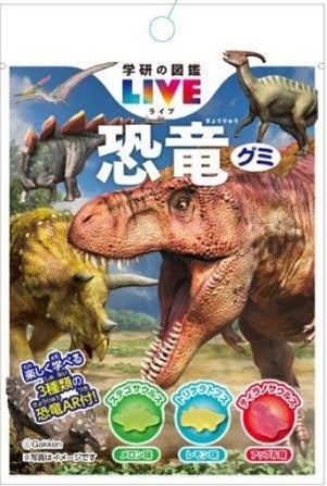 3種類の恐竜の形をしたグミを楽しめる!人気の図鑑シリーズ「学研の図鑑LIVE」とコラボした「学研の図鑑LIVE恐竜グミ」を2024年4月23日(火)に新発売いたします。