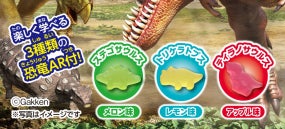 また本商品にはAR機能が付いており、ARAPPLI(アラプリ)というアプリをダウンロードしていただき、パッケージ表面のグミの部分を携帯でスキャンするとランダムで3種類の恐竜が飛び出てきます。