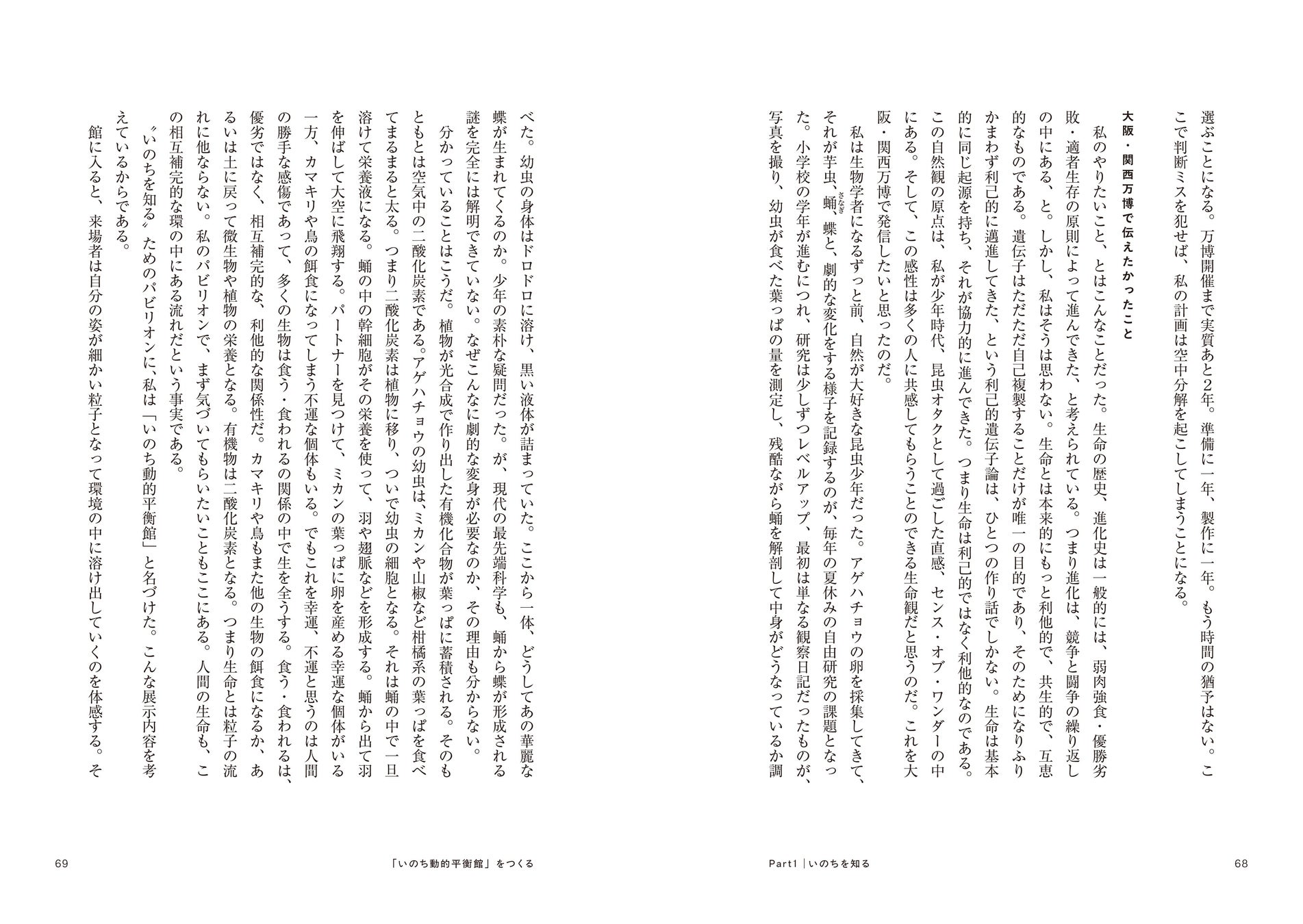 君は、いのち動的平衡館を見たか。そう問われたら、実際に見てくださった方はぜひ「見たぞ!」と答えてほしい。これから行こうと思われる方は「見るぞ!」と応じてほしい。惜しくも見そこなった方がいても安心してほしい。本書を読めばメッセージは十分伝わるはずである。「受け止めた!」と言っていただきたい。私は、自らの動的平衡の最後の一粒が散らばるまで、この理念を深め、語り続けるつもりである。