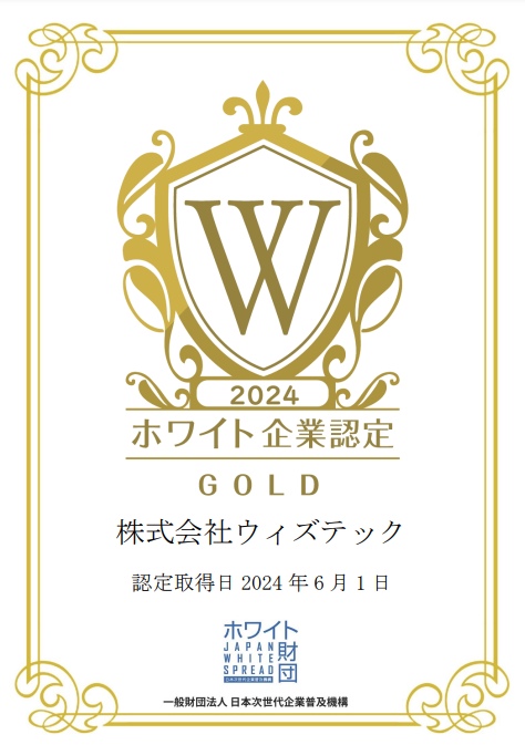 株式会社ウィズテック様が、一般財団法人日本次世代企業普及機構(通称:ホワイト財団)が運営する「ホワイト企業認定 ゴールドランク」を取得しましたことをお知らせいたします。