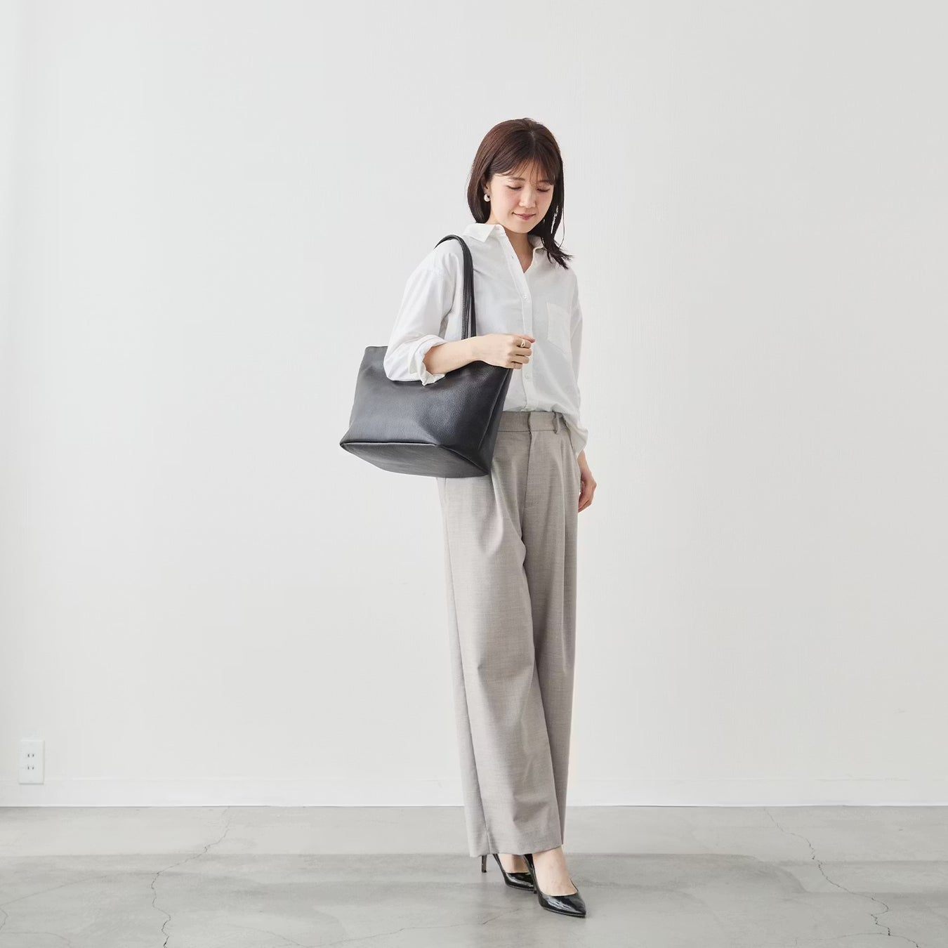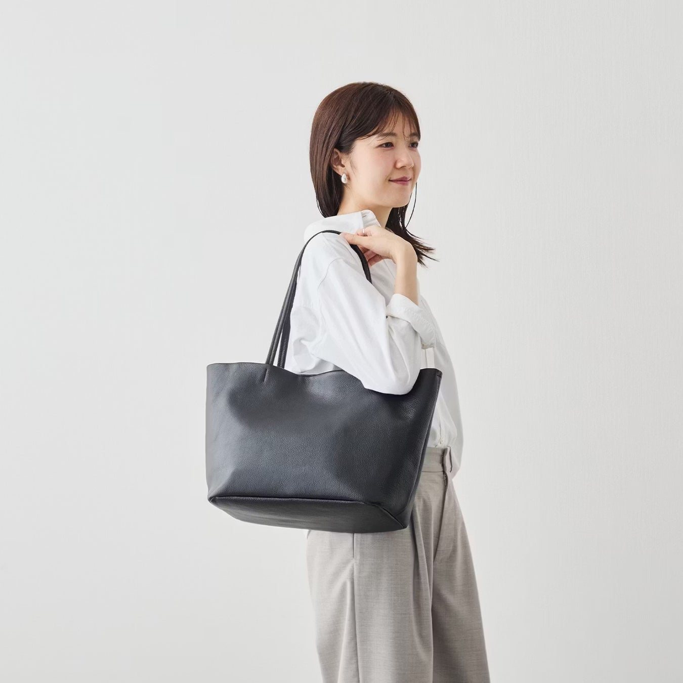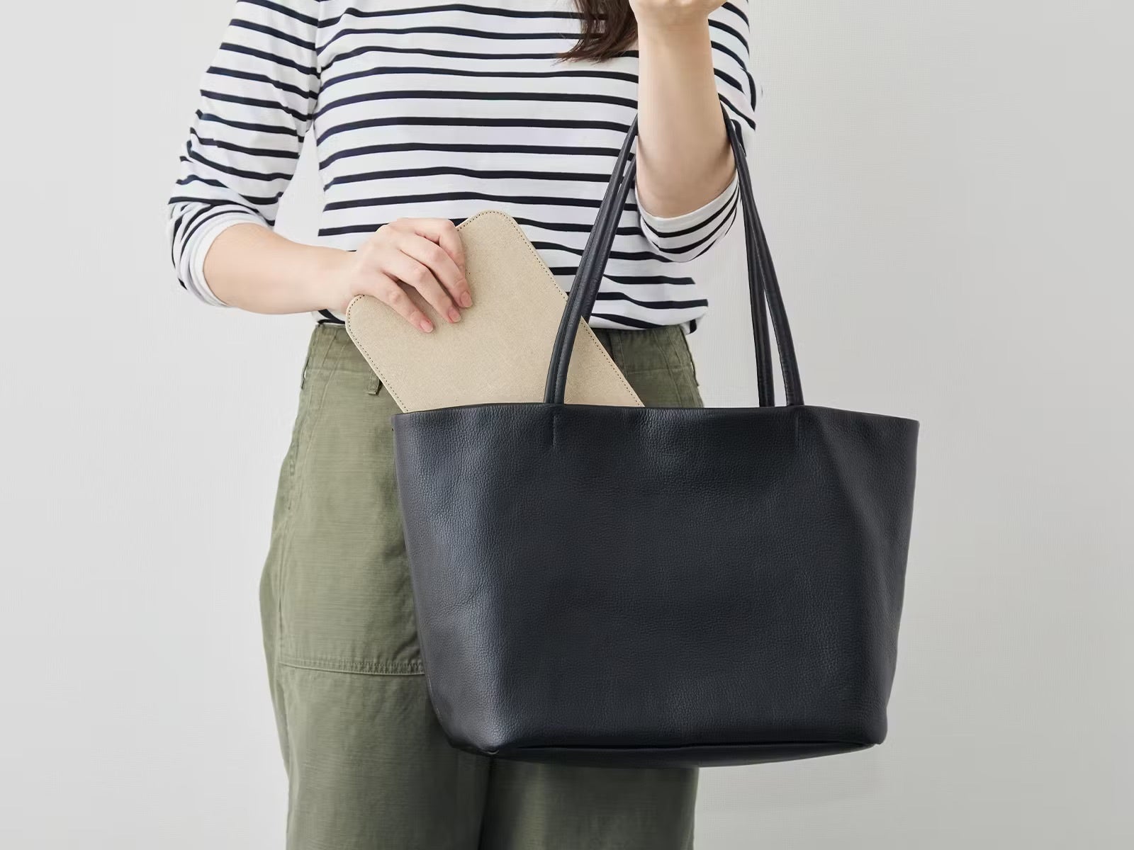 普段はA4サイズの書類やノートパソコンがきれいに収まる、端正なトートスタイルに。