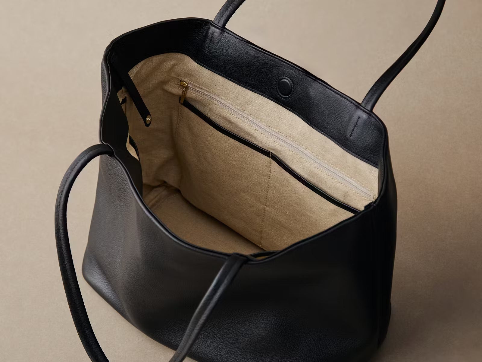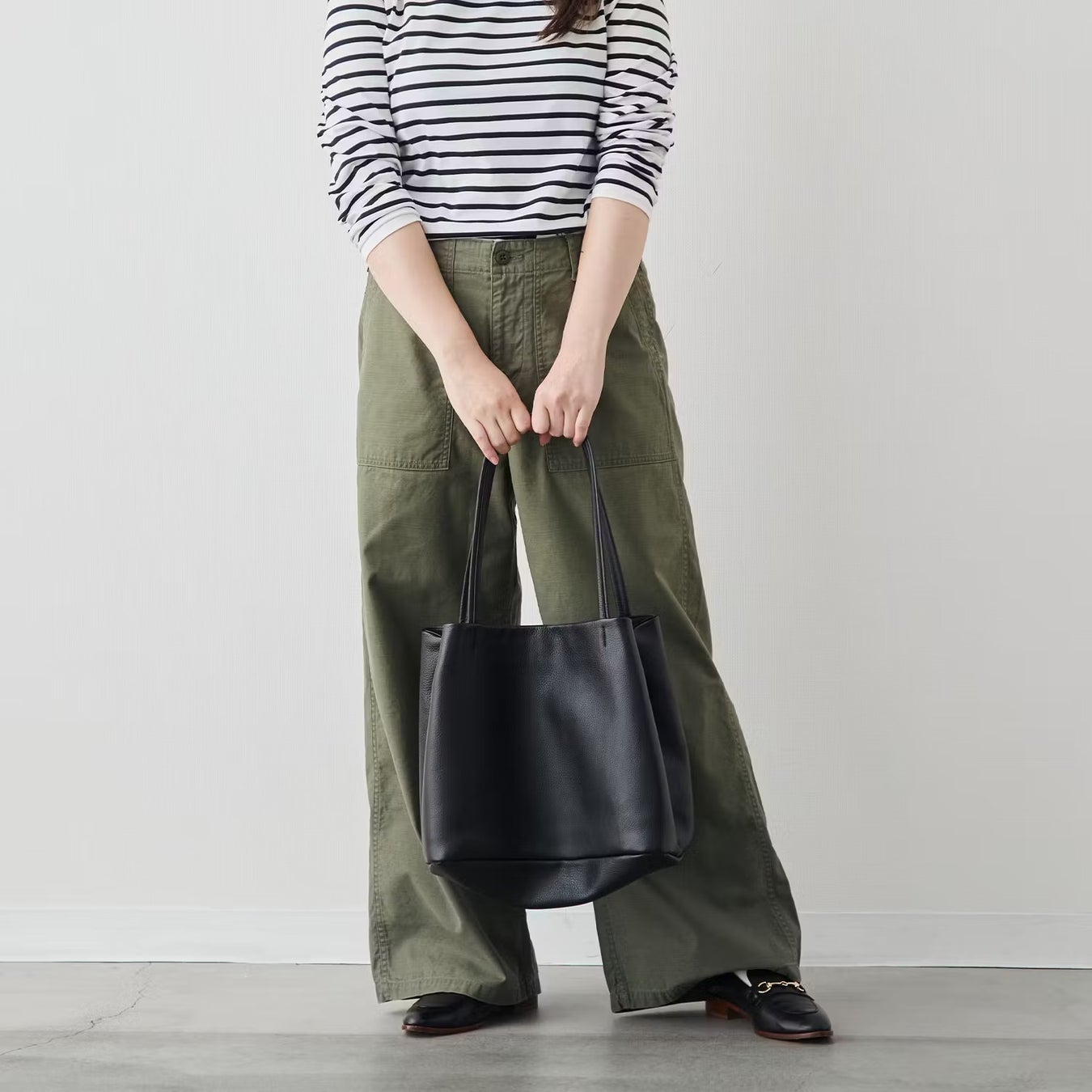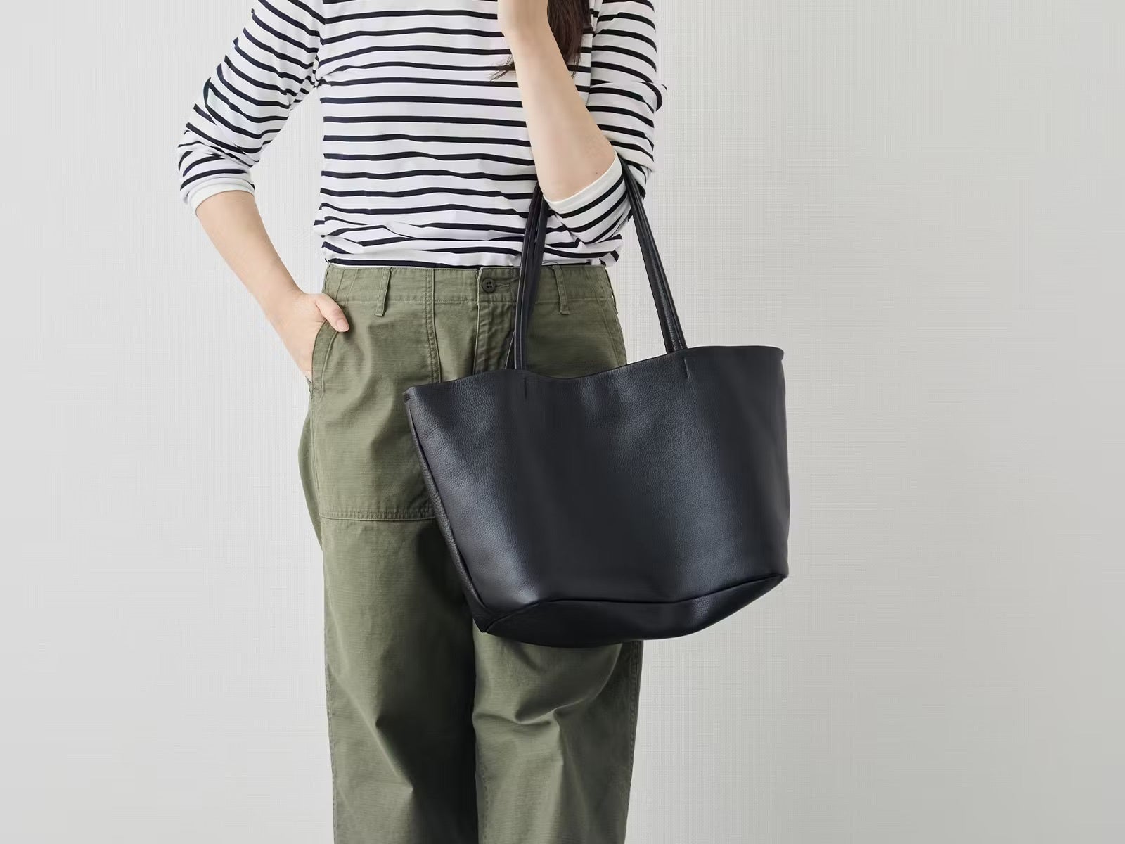 普段はA4サイズの書類やノートパソコンがきれいに収まる、端正なトートスタイルに。