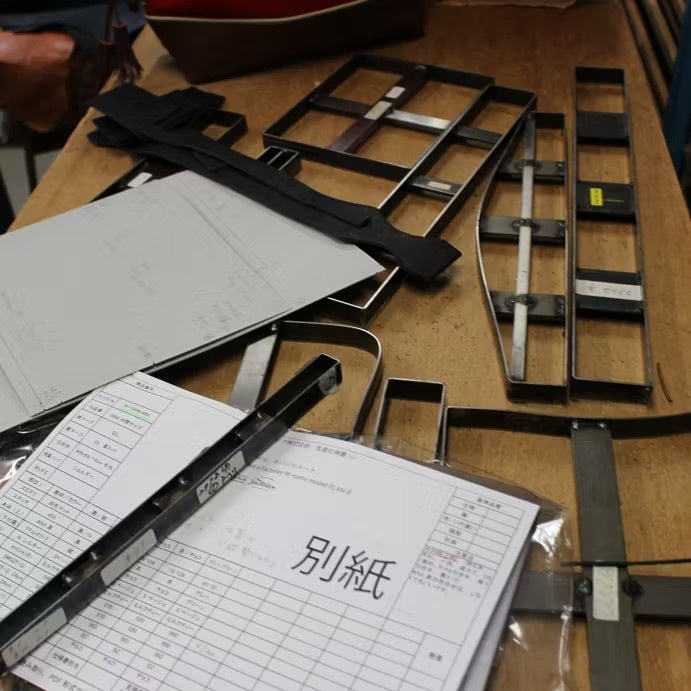 一般的には一人の職人さんが一つのバッグを最初から最後まで仕立てることが多いのですが、『エールック』では各工程を専門の職人が分業で担当。