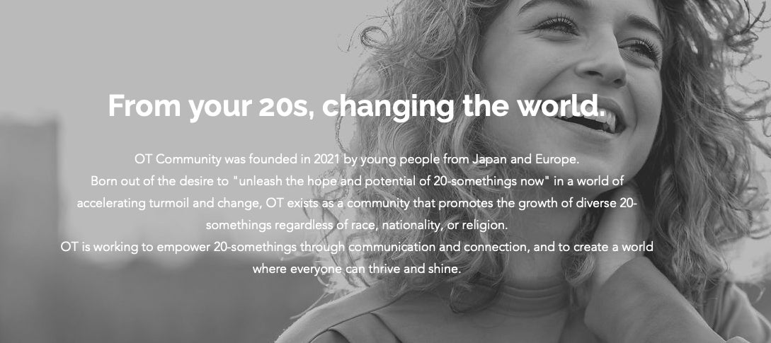 混乱と変化が加速する世界で「20代の希望と可能性を解き放つ」という想いから生まれたOTは、人種、国籍、宗教を問わず、多様な20代の成長を促進するコミュニティとして存在しています。