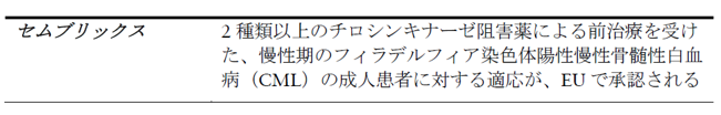 - セムブリックスのフィラデルフィア染色体陽性(Ph+)慢性骨髄性白血病の成人患者への適応がEUで承認される