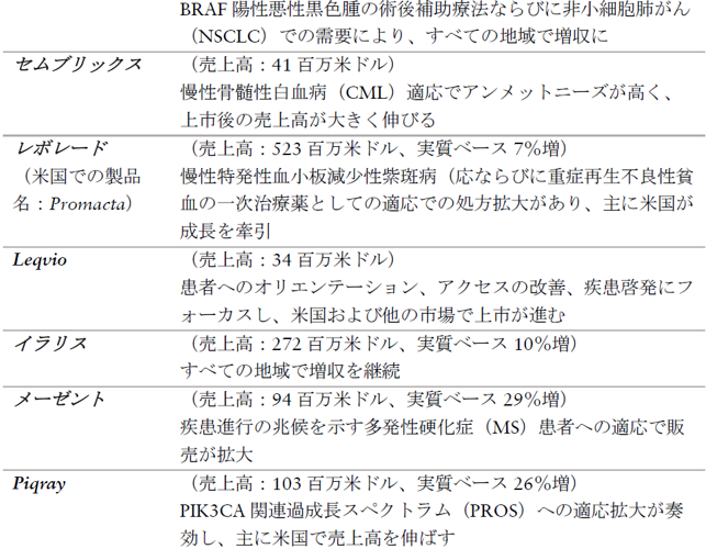 - イノベーティブ メディスンの売上高は実質ベース 5%増(米ドルベース 1%減)、コア営業利益は実質ベース 6%増(米ドルベース 1%減)