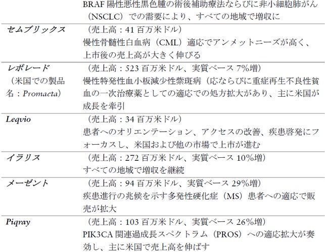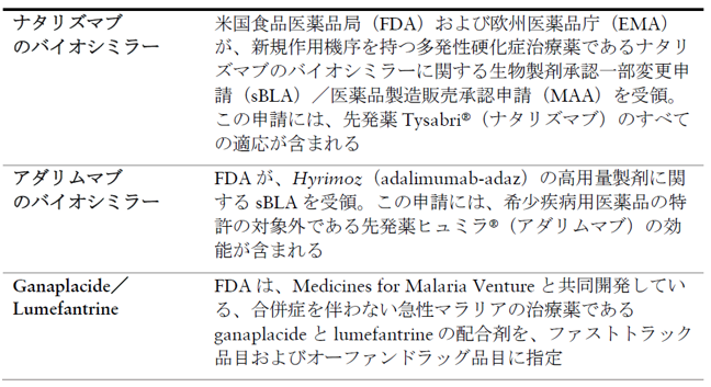 - 成長を加速:付加価値の高い医薬品(新規化合物)供給への注力を新たにするとともに、すべてのコア疾患領域での豊富なパイプラインを背景とした優れた上市活動にフォーカス