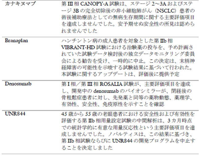 進行中の臨床試験の結果およびその他のハイライト